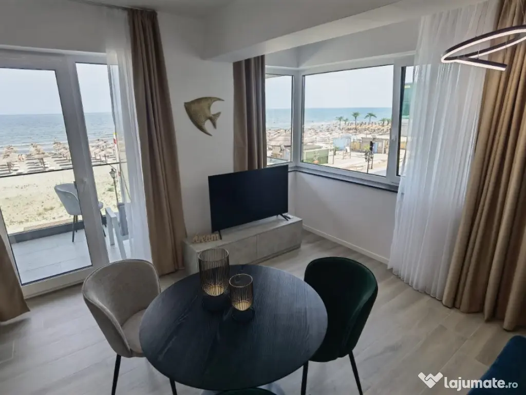 DIRECT DE LA DEZVOLTATOR FĂ-TE VECIN CU MAREA APARTAMENTE – STUDIOURI PRIMA LINIE LA MARE Mobilate si utilate complet la "cheie" inclusiv AC si masina de spalat vase Apartamente de la 96.000 eur cu vedere laterala tva inclus in pret Studiouri de la 69.000 eur vedere laterala tva inclus in pret valabil etaj 1 ,etaj 3,4,5 pret 72.000 eur Apartamentele cu vedere frontala de la 145.000 eur +tva Apartamente de la 115.000 eur etaj 4 si 5 Loc parcare teran 15.000 eur +tva Loc parcare subteran 20.000 eur +tva Locatia este in Mamaia Sar zona Colonia Butoaie, o zona rezidentiala in plina dezvoltare ce asigura acces facil catre urmatoarele zone de interes: -Restaurante -Beach baruri -Cluburi -Festivaluri Este un proiect imobiliar exclusivist cu regim de inaltime D+P+6 ce cuprinde 38 apartamente de 2 camere ,10 Studiouri, doua penthouse-uri si un spatiu comercial in suprafata de 400 mp Imobilul este executat cu profesionalism si materiale de buna calitate. Stadiul de predare al apartamentelor-studiourilor va fi la cheie si racordate la utilitati cu urmatoarele dotari : -centrala pe gaz cu incalzire in pardoseala -baie completa gresie-faianta instalatii sanitare montate ,cabina de dus si grupuri sanitare -usa metalica antiefractie porta doors -usi interior - parchet instalatii electrice (intrerupatoare si prize montate )aer conditionat -sistem izolatie -Termosistem cu polisteren plasa fibra sticla,tencuiala decorativa -tamplarie PVC Veka cu 5 camere -izolatie fonica glet și lavabila aplicata Acte la zi receptie si apartamentare totul functional 100 % ( gaz ,apa ,curent ,canalizare) Teren proprietate ,proiect sustinut din din resurse propii 100% Confort: Lux Tip imobil: Bloc de apartamente