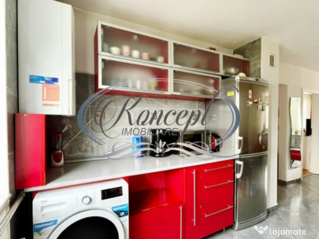 Koncept Imobiliare va ofera spre vanzare un apartament cu 4 camere semidecomandat, situat in cartierul Manastur, in zona complexului Nora, pe o artera circulata, cu acces rapid catre principalele puncte de interes. Proprietatea este amplasata la etajul 3 al unui imobil rezidential cu regim de inaltime D+P+4E, reabilitat termic, oferind un echilibru bun intre spatiu, functionalitate si accesibilitate urbana. Apartamentul are o suprafata utila de 77 mp, la care se adauga o logie inchisa de aproximativ 5 mp. Orientarea Sud–Nord asigura lumina naturala pe tot parcursul zilei si o ventilatie eficienta. Compartimentarea este practica si adaptata unei locuinte de familie, fiind compusa din antreu, living, trei dormitoare, bucatarie separata si baie cu geam. Logia inchisa extinde zona de utilizare si poate fi folosita ca spatiu de relaxare sau depozitare. Proprietatea este complet mobilata si utilata, bucataria fiind amenajata integral, gata pentru utilizare imediata. Apartamentul a fost renovat recent, beneficiaza de geamuri termopan cu tamplarie PVC, usa metalica la intrare, centrala termica proprie si sistem de incalzire prin calorifere. Instalatiile electrice si sanitare au fost schimbate, contribuind la confortul si siguranta viitorului proprietar. In plus, apartamentul dispune de boxa de depozitare la subsol, iar parcarea este posibila in zona. Zona este bine conectata la transportul public si ofera acces facil catre scoli, gradinite, spatii comerciale, parcuri si baza sportiva „La Terenuri”, unul dintre cele mai apreciate puncte de recreere din Manastur. Desi pozitionat pe o artera circulata, apartamentul ofera un stil de viata urban echilibrat, cu toate facilitatile la indemana. Aceasta proprietate este recomandata in special pentru locuinta proprie, fiind ideala pentru o familie care cauta un apartament spatios, renovat, mobilat si utilat, cu posibilitate de mutare rapida, intr-o zona consacrata a cartierului Manastur. Pentru informatii suplimentare, programarea unei vizionari sau pentru a afla oferta noastra completa va stam la dispozitie telefonic, prin e-mail sau la sediul agentiei noastre, pe str. Aviator Badescu, nr. 19, Cluj-Napoca. Id intern: P21155 Confort: 1 Tip imobil: Bloc de apartamente Număr Băi: 1