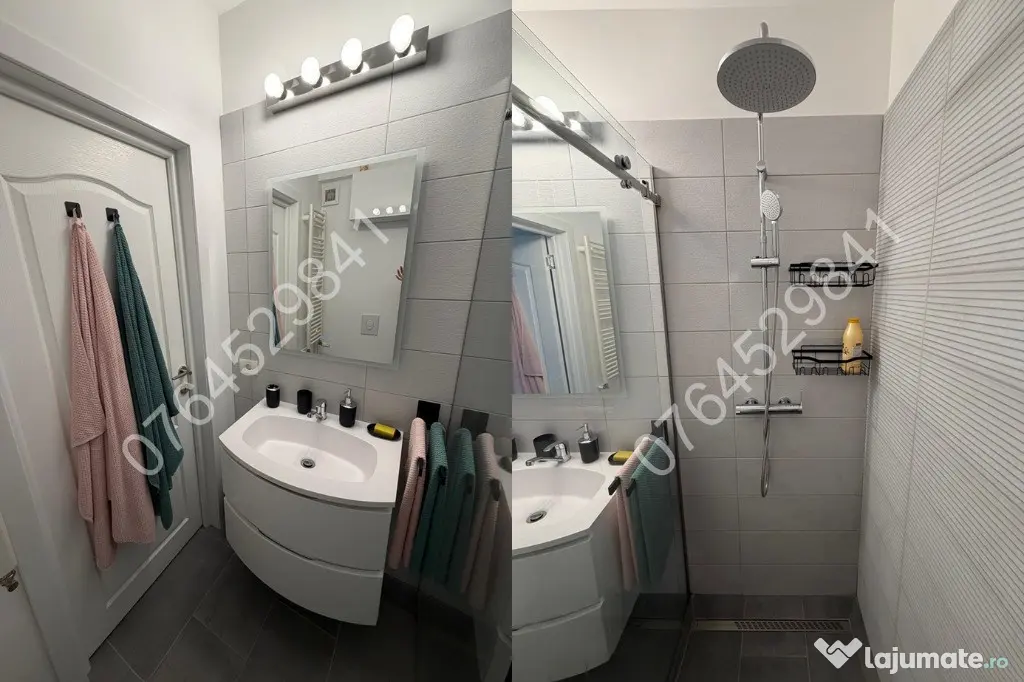 Balcon inchis in termopan si inclus in living,2 aparate de aer conditionat,televizor smart,canapea+zona dining in living,pat matrimonial+dressing generos in dormitor,spatii depozitare,plita inductie+cuptor electric+hota incorporate,cuptor cu microunde, espressor cafea,combina frigorifica,masina de spalat rufe, dus walk-in cu rigola si rain shower.