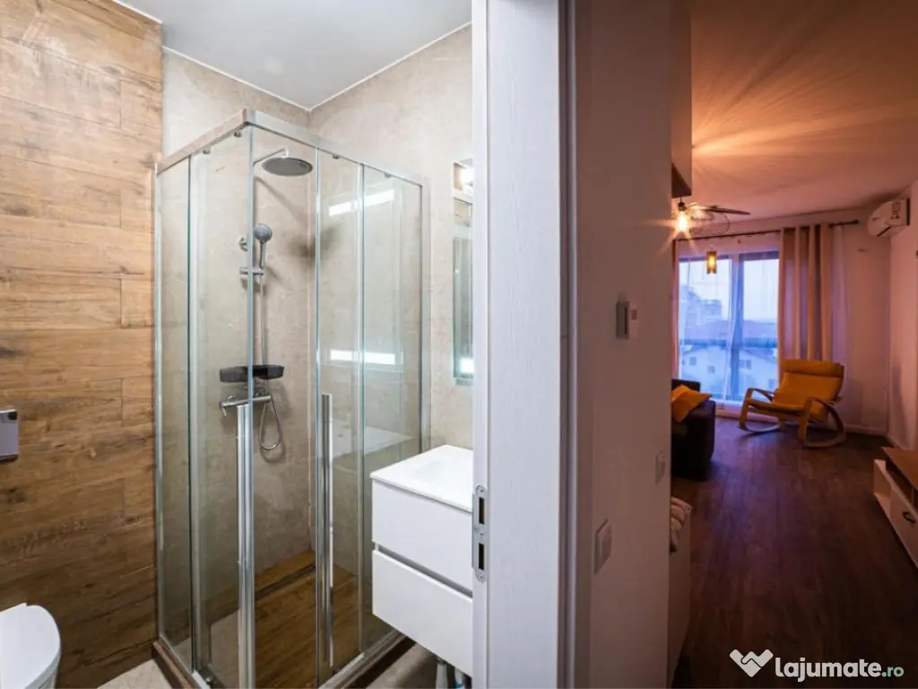 Această garsonieră de 43 mp, construită după 2000, oferă un interior luminos și confortabil. Pardoselile de lemn și finisajele de înaltă calitate creează un ambient plăcut. Bucătăria și baia sunt complet utilate și finisate cu plăci și sanitare moderne. Apartamentul se află într-o zonă urbană, cu vedere către stradă și acces facil la principalele arterele ale orașului. La doar câțiva pași, găsești magazine, restaurante și alte facilități. În apropiere nu există păduri, dar zona are un caracter urban și o infrastructură bine dezvoltată. Dacă te interesează această ofertă, nu ezita să programezi o vizionare pentru a descoperi tot ce are de oferit. Confort: 1 Tip imobil: Bloc de apartamente Comision cumpărător: 50%