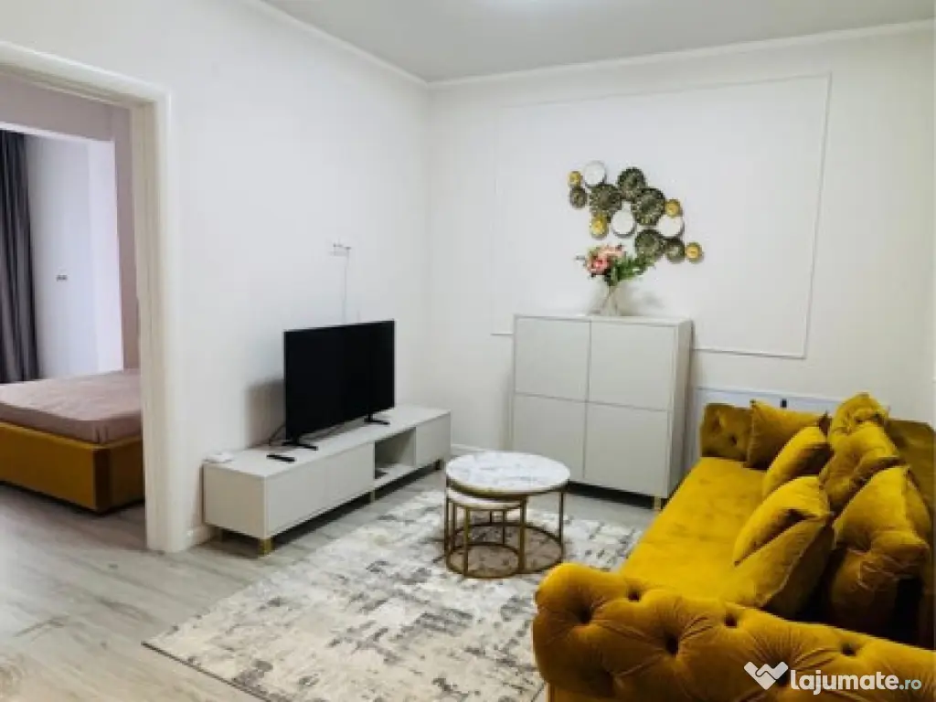 DESCRIERE Apartamentul este poziționat excelent, la etajul 1 din 10, în complexul rezidențial Apollo Residence Pasarela, langa pasarela pietonala metrou Berceni si Auchan Popesti-Leordeni; • Langa pasarela metrou Berceni / statie de autobuz - > vezi poza Google Maps; • Acces rapid la toate facilitățile importante: Auchan, StayFit Gym, Profi, Penny, Mega Image, cafenele, restaurante, farmacii, parcuri, grădinițe și școli (de stat și private). Toate la distanta de 3-7 minute de mers pe jos; Adresa exacta: Str. Popesti Vest, nr. 37 - Popesti-Leordeni Compartimentare: • living + bucătărie open-space • 1 dormitor • 1 baie • 1 balcon generos Suprafata utila: 45 mp Dotări & finisaje premium: • Mobilier premium realizat pe comandă, electrocasnice de calitate; • Suprafețe vitrate foarte mari, ferestre tripan de sus până jos; • Baie cu WC incastrat si cada; • Încălzire în pardoseală cu termostat; • Aer condiționat ; • 1 televizor Smart 4K; • Mașină de spălat rufe; • Combină frigorifică No Frost; • Plită 4 ochiuri pe gaz + cuptor multifuntional. • Canapea extensibila; • Spații generoase de depozitare (dressing mare in dormitor + dulap living); • Plafoniere smart cu telecomandă, dimabile și cu 3 tipuri de lumină; • Videointerfon; Fumatul permis doar pe balcon. Se inchiriaza doar pe termen lung persoanelor serioase. Inainte de vizionare pot furniza video pe Whatsapp. Pret fix: 525 EUR 1 luna avans + 1 luna garantie Confort: 1 Tip imobil: Bloc de apartamente Comision cumpărător: 50%