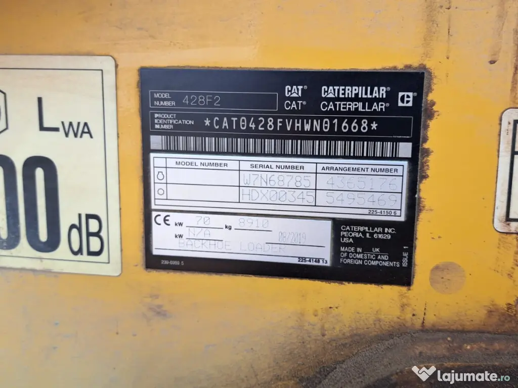 - Vand Buldoexcavtor CAT 428F2 an fabricatie 2019 in stare buna de functionare. In pret sunt incluse si accesoriile : cupa 600; cupa 300; cupa trapezoidala pentru santuri, cupa taluz 1200; pikon