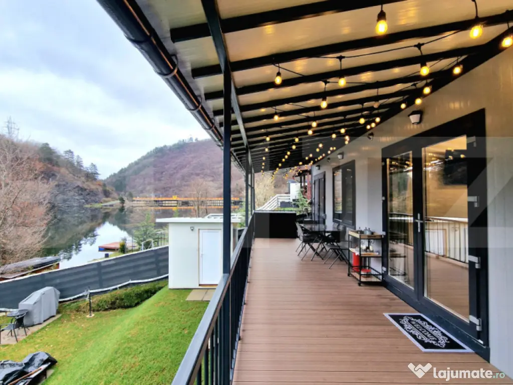 ???? Această proprietate unică este o cabană modernă, amplasată chiar pe malul lacului Someșul Cald, una dintre cele mai apreciate destinații din Cluj pentru relaxare, paddleboarding (SUP), caiac, pescuit și plimbări în natură. ???? Proprietatea are o suprafață utilă de 62.5 mp și este amplasată pe un teren de 270 mp, beneficiind de un ponton propriu pe structură metalică, un avantaj rar care oferă acces direct la apă și experiențe unice. ???? Compartimentare eficientă: • Living cu bucătărie open-space, cu priveliște superbă spre lac • 2 dormitoare luminoase, ambele orientate spre apă • Baie modernă ✨ Construcție solidă & eficientă: Structură metalică, ridicată pe 30 de piloni din beton Panouri sandwich + izolație cu vată bazaltică de 10 cm Finisaje interioare din rigips Foarte bine izolată – confort în orice anotimp Centrală pe peleți cu control din telefon Generator propriu – siguranță totală indiferent de situații ????️ Facilități & utilități: Acces direct la lac + ponton privat Fosă septică (cost aprox. 350 lei la 2-3 luni) Curent asigurat + soluții de backup ???? Business activ – se predă la cheie: Funcționează în regim Booking Venituri orientative: • ~1800 lei/weekend (sezon rece) • ~2500 lei/weekend (sezon cald) Se vinde inclusiv ca business funcțional, cu potențial excelent ???? Detalii importante: -Achiziție doar CASH -Teren în concesiune: cost 600 euro/an -Contract pe 10 ani, cu drept de preemțiune (prioritate la cumpărare dacă terenul se scoate la vânzare) -Există documentație cu fiecare etapă a construcție dar nu există autorizație de construcție ???? Ideală atât ca locuință de vacanță, cât și ca investiție profitabilă, într-o locație exclusivistă, unde cererea pentru astfel de proprietăți este în continuă creștere. Cod ofertă / ID BLITZ: P168701 Id intern: P168701 Număr Băi: 1 Curent Apă