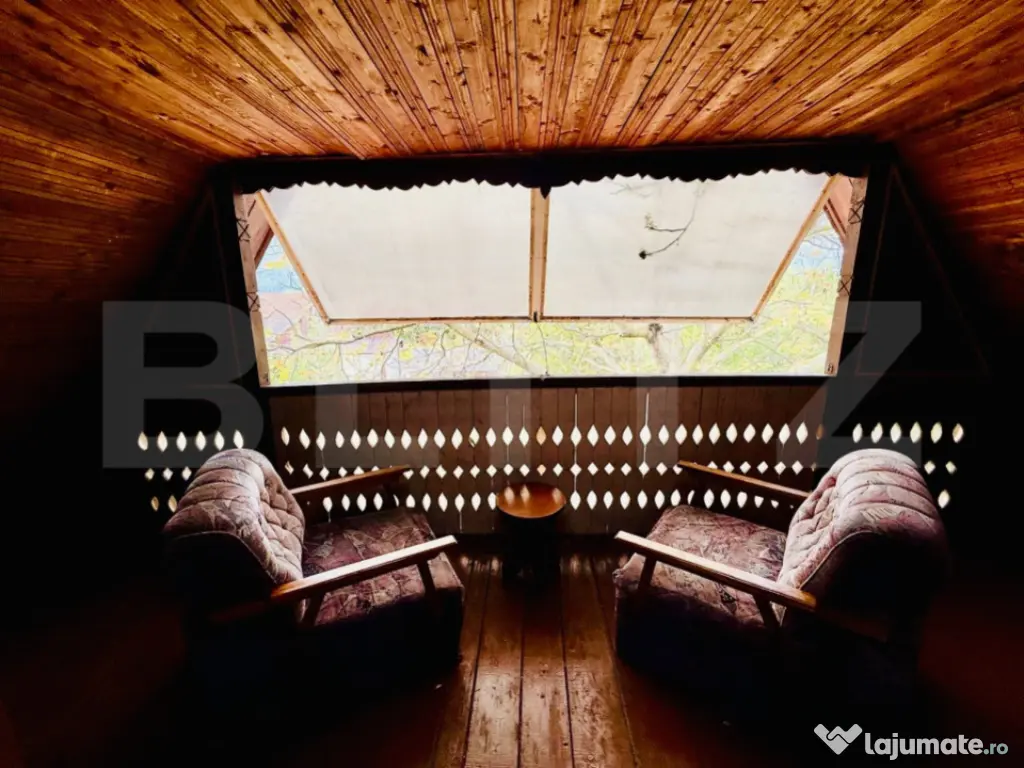Blitz îți propune să descoperi liniștea și frumusețea naturii în această cabană cochetă din lemn, situată în apropierea Dunării, în pitoreasca localitate Liubcova, cu vedere panoramică spre Berzeasca. Proprietatea se află pe un teren generos de 700 mp, oferind intimitate, aer curat și acces ușor către malul Dunării – locul ideal pentru relaxare, pescuit sau drumeții în natură. Cabana are o suprafață utilă de 37 mp, fiind compartimentată eficient astfel: -Parter: bucătărie complet utilată, baie modernă și o cameră spațioasă cu rol de living, perfectă pentru relaxare în serile liniștite; -Mansardă: o cameră primitoare ce se deschide către o terasă cu vedere panoramică asupra Dunării și a satului Berzeasca – un colț de rai pentru iubitorii de apusuri spectaculoase. Construită integral din lemn de calitate, cabana îmbină farmecul rustic cu confortul modern. Încălzirea se realizează prin calorifere electrice, iar apa caldă este asigurată de un boiler electric, făcând proprietatea ușor de întreținut pe tot parcursul anului. Această cabană este alegerea perfectă pentru: iubitorii de natură și aer curat, pasionații de pescuit, cei care caută un refugiu de weekend sau o investiție turistică într-o zonă cu potențial. Va așteptăm cu drag sa programați o vizionare! Cod ofertă / ID BLITZ: P154717 Id intern: P154717 Număr Băi: 1 Curent Apă