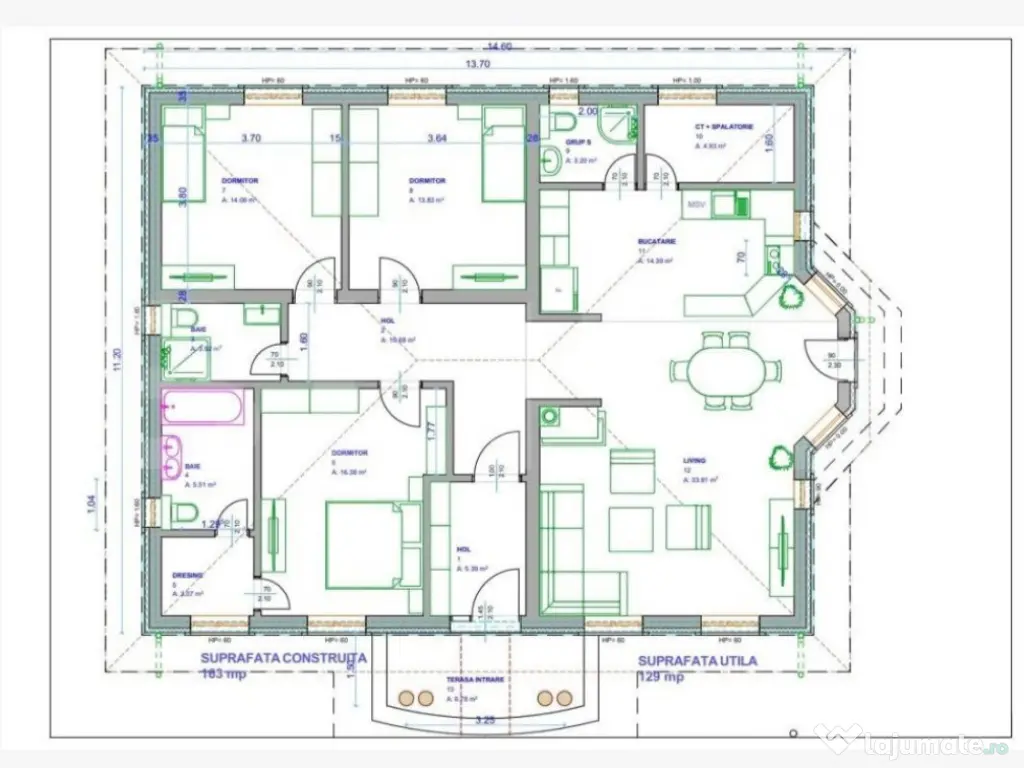 Suntem in cautare de noi proprietari care pun accentul pe calitate, in ceea ce priveste locuinta lor personala! BLITZ va propune spre vanzare un numar de 5 case premium dispuse pe un regim de inaltime parter + pod, construite cu simt de raspundere, in deplina armonie cu natura, avand o arhitectura unica in Brasov. Situata in comuna Sanpetru, intr-o zona aerisita si cu un view curat. Fiecare dintre case ofera camere luminoase si spatioase, ambient foarte placut si primitor, compartimentare inteligenta si eficienta, oferind noilor proprietari finisaje premium si multumirea ca au gasit casa mult visata. Pozitionarea lor se afla in S-V respectiv S-E si N-V. Casa este premium, construita in stil traditional, dar ofera in acelasi timp eleganta si confort : -1 bucatarie open space cu zona de dinning si living generos cu suprafata de 50mp - 1 spalatorie / camara - 3 dormitoare (un dormitor matrimonial de 17 mp + dressing si baie proprie si 2 dormitoare cu SU 14mp ) - 2 bai principale : - baie cu dus si cada la dormitorul matrimonial - baie comuna pentru cele 2 dormitoare de 18mp - 1 grup sanitar Detalii tehnice : structura de caramida T30x25 cm latime, placa de beton intre parter si pod, fundatie beton armat+fier, izolatie exterioara cu polistiren 20cm cu densitate de 80% , incalzire in pardoseala pe toata suprafata casei. Detine toate utilitatile necesare: apa, canalizare, gaz si electricitate. Proprietatea ofera acces cu masina in curte. Vila este potrivita pentru familii de toate varstele. Constructia este pe un singur nivel, fara scari sau trepte, accesul facandu-se foarte facil din exterior si peste tot in interior. Stadiu : Lucrarile incep in luna ianuarie 2024 si se finalizeaza in functie de prioritatile clientilor! Termen limita : toamna anului 2024 . Metoda de plata : 3 transe in diferite stadii ale constructiei. 30-30-40% Predare : Se predau la alegere : semifinisate cu posibilitatea sa va amenajati dupa bunul plac / la cheie cu un buget prestabilit pe mp. Comision 0% cumparator! Pretul actual este pentru rezervare din stadiul de proiect! Va invit la o discutie deschisa pentru a prezenta proiectul de la A la Z ! Cod ofertă / ID BLITZ: P99478 Id intern: P99478 Număr niveluri imobil: 1 Număr Băi: 3 Nr. locuri parcare: 2