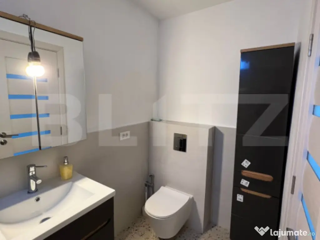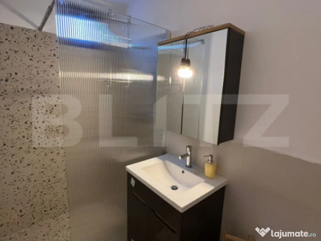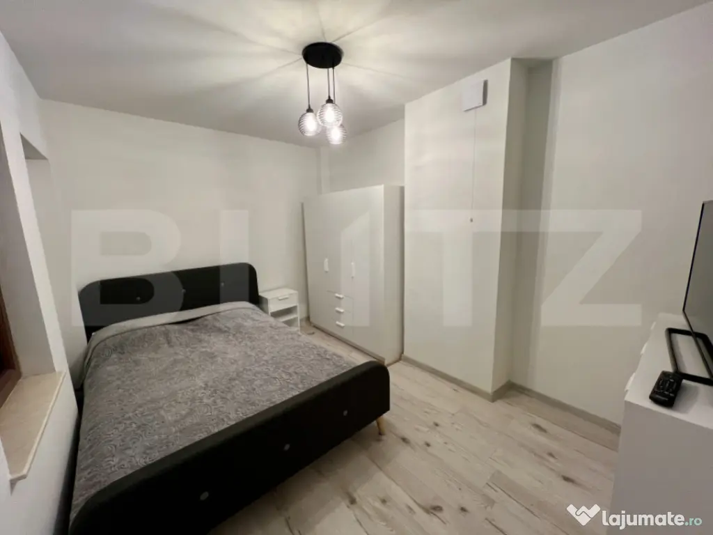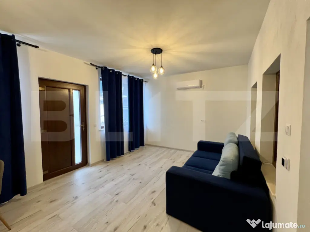 Blitz va ofera spre inchiriere o casa recent renovata, formata din dormitor, living open space cu bucataria, baie si o curte, 43 mp. Casa beneficiaza de centrala proprie, incalzirea este prin pardoseala, boiler si un loc de parcare. Este disponibila imediat. Va asteptam cu drag la vizionare! Cod ofertă / ID BLITZ: P155249 Id intern: P155249 Număr Băi: 1 Nr. locuri parcare: 1 Curent Apă Canalizare Climă