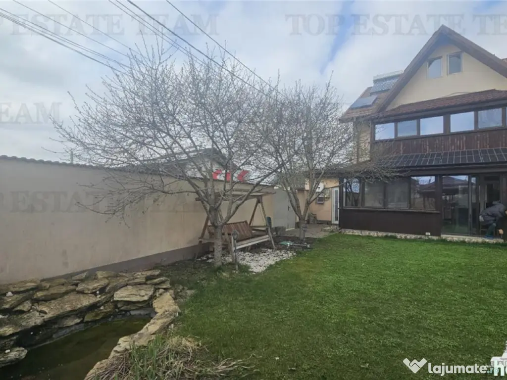 Excelenta prin experienta! Va propunem la vanzare o proprietate deosebita si spatioasa in centrul localitatii Ciorogarla, cu multe atuuri fata de o casa standard, pentru clienti mai pretentiosi. Casa este optimizata energetic, dotata cu sistem fotovoltaic de 10 KW (prosumator), panou solar pentru apa calda, boiler electric. Canalizarea este trasa si urmeaza sa fie conectata, centrala pe gaz, cu termostat pe fiecare camera si aplicatie Salus de comanda si control la distanta prin telefon, bucataria si terasa au incalzire electrica in pardosealaa un superb semineu pe lemne din teracota. In plus casa are si o terasa frumoasa inchisa cu lemn si geamuri termopan glisante 25 mp (incalzire in pardoseala, aer conditionat, sistem pentru videoproiector) Constructie 2012 (extinsa in 2018) pe structura beton si caramida Porotherm, izolatie polistiren 10 cm, decorativa cu textura cauciucata rezistenta. Regim P 1 M (mansarda in acte) Suprafata utila totala 274.1mp, amprenta la sol 179.4 metri. Teren 385 mp, aproximativ 200 mp gradina superba, cu foisor de lemn (10 mp), gratar de caramida cu cuptor, chiuveta, aragaz, iaz cu pesti, gazon 150 mp cu sistem automat de irigatie, pomi fructiferi. Mansarda locuibila cu dusumea si lambriuri de lemn, un sentiment de casa de vacanta la munte, ideala pentru retragere si seri in familie. Suprafata utila aproximativ 45 mp cu baie si multiple nise de depozitare. Pardoseala in anexe este acoperita cu vopsea Epoxi, usor de curatat si intretinut. Doua usi garaj cu deschidere automata. Rafturi metalice depozitare. Filtru apa, lampa UV sterilizare-purificare apa, dedurizator. Clasa energetic A (avantaj la dobanda scazut la credit ipotecar) Vila se vinde mobilata/utilata pentru pretul de 179500 EURO, nu se adauga TVA. Oferim consultanta gratuita pentru obtinerea de credit ipotecar. Se accepta si schimburi (apartament diferenta) Program de vizionare flexibil, inclusiv seara sau weekend (cu programare in prealabil). Avem cheile proprietatii. Oferta apartine agentiei Top Estate Team (www.tet.ro) Număr Băi: 3 Posibilitate parcare: Da Nr. locuri parcare: 2 Curent Gaz