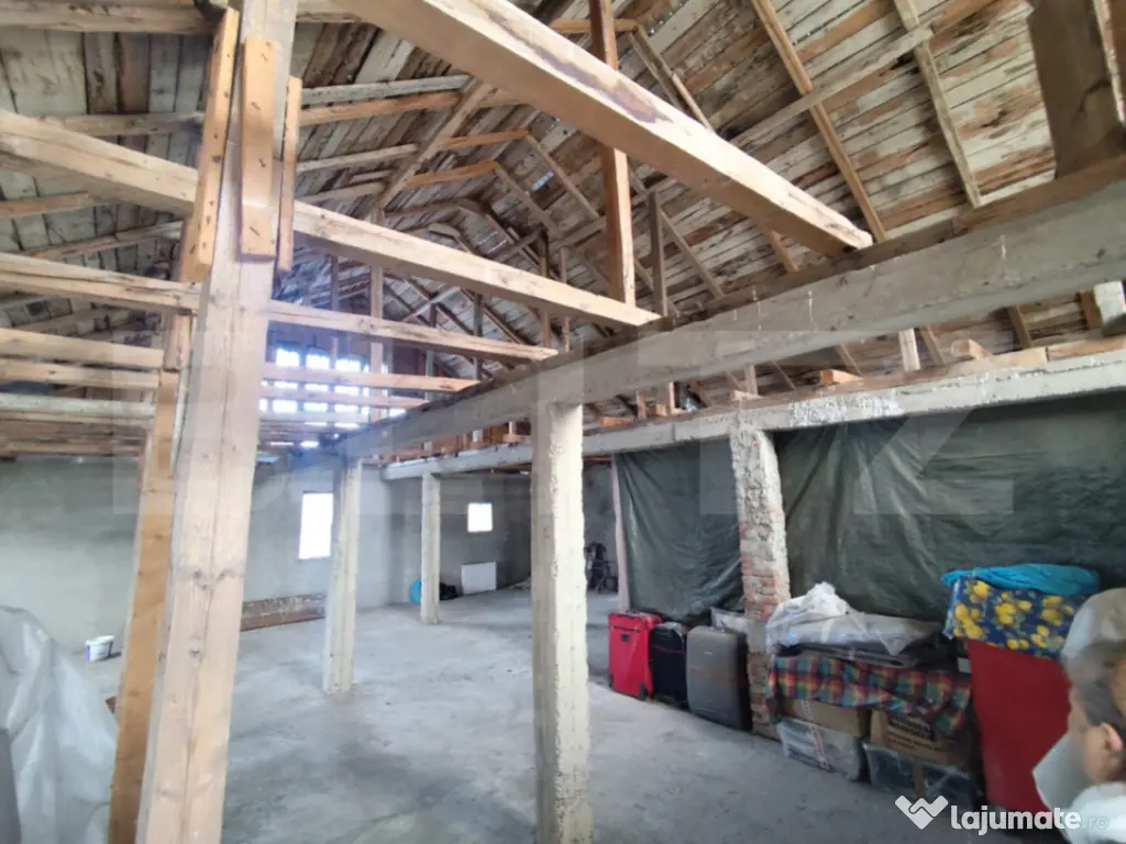 Catalin Manolache-Specialist Broker Blitz Imobiliare Iasi va propun spre vanzare o casa de vanzare in Tutora, cu o suprafata utila de 277 mp utili si o suprafata utila totala de 350 mp. Deschidere de 27 ml la strada asfaltata. Suprafete si compartimentari: Beci-18 mp din beton, cu placa izolata Parter: 121 mp-living foarte spatios, 2 dormitoare, baie, bucatarie, camera tehnica, bucatarie exterioara tot in cadrul constructiei, terasa Etaj: 138 mp, necompartimentat, cu acces prin scari exterioare betonate+ terasa 24 mp- se pot amenaja aici inca 5 camere si baie, structura de beton la etaj Pod- spatiu depozitare Stadiu constructie+ acte Cladirea este construita si acoperita. La parter avem glet, instalatii electrice sanitare si termice trase, baie functionala, cu WC,cada, chiuveta, boiler, parchet hol, camera. Are caloriferele montate, tevile trase, trebuie doar centrala Geamuri termpan cu tamplarie PVC Etaj: necompartimentat Necesita: Izolatie exterior, centrala, reparatii, var, parchet/gresie la parter Etaj: de la stadiul la rosu Utilitati: apa si energie electrica trase, fosa, iar canalizarea si gazul se afla in fata portii, trebuiesc doar conectate la proprietate. Pretul vanzarii este unul deosebit, raportat la varsta vanzatorilor si la domiciliul lor actual. Cladirea se preteaza pentru camin de batrani, gradinita, after school, cabinete, birouri sau pentru 2 familii. Va astept la vizionare! Cod ofertă / ID BLITZ: P151342 Id intern: P151342 Număr niveluri imobil: 1 Număr Băi: 1 Nr. locuri parcare: 2 Curent Apă