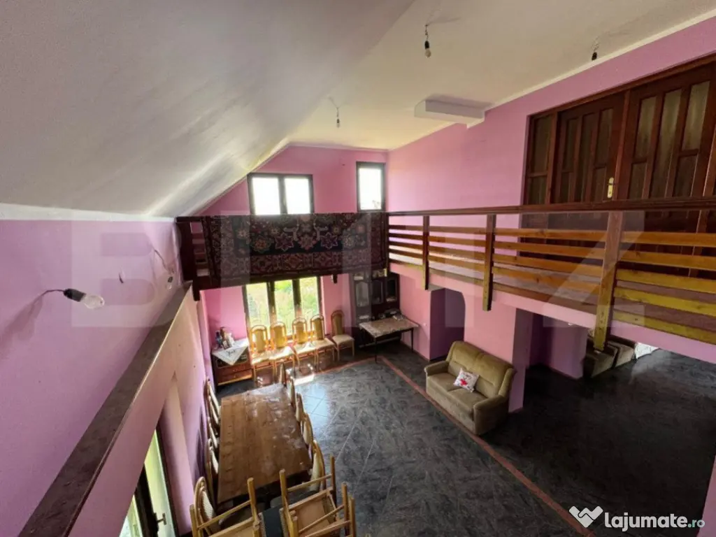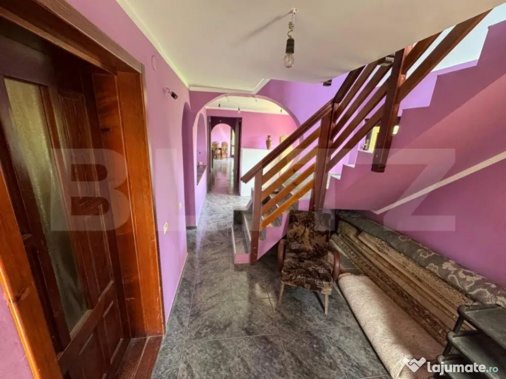 Blitz ofera la vanzare o casa cu suprafața de 330 mp si terenul aferent de 1300 mp. Locuința dispune de 5 dormitoare, oferind suficient spațiu pentru a găzdui o familie numeroasa. Livingul este pe tot parterul casei, la fel si subsolul care are doua intrari, una dintre ele fiind din exteriorul casei. Cele doua bucatarii si patru bai, asigura confortul in locuinta. In cazul in care se doreste spatiu suplimentar, podul este inalt si se mai pot amenaja inca doua sau chiar trei dormitoare. Utilități: Apă curenta, Gaz, Canalizare, Curent trifazat Sistem Sanitar: Fântână și fosă septică. Această proprietate din Plopeni oferă un potențial extraordinar datorită spațiului generos și diverselor facilități disponibile. Necesită lucrări de renovare pentru a atinge standardele moderne de confort și estetică, dar după finalizarea acestora, poate deveni o locuință excelentă pentru o familie mare sau un loc ideal pentru diverse activități gospodărești și recreative. Va invitam la vizionare! Cod ofertă / ID BLITZ: P127480 Id intern: P127480 Număr niveluri imobil: 2 Număr Băi: 4 Nr. locuri parcare: 3 Curent Apă Canalizare Gaz