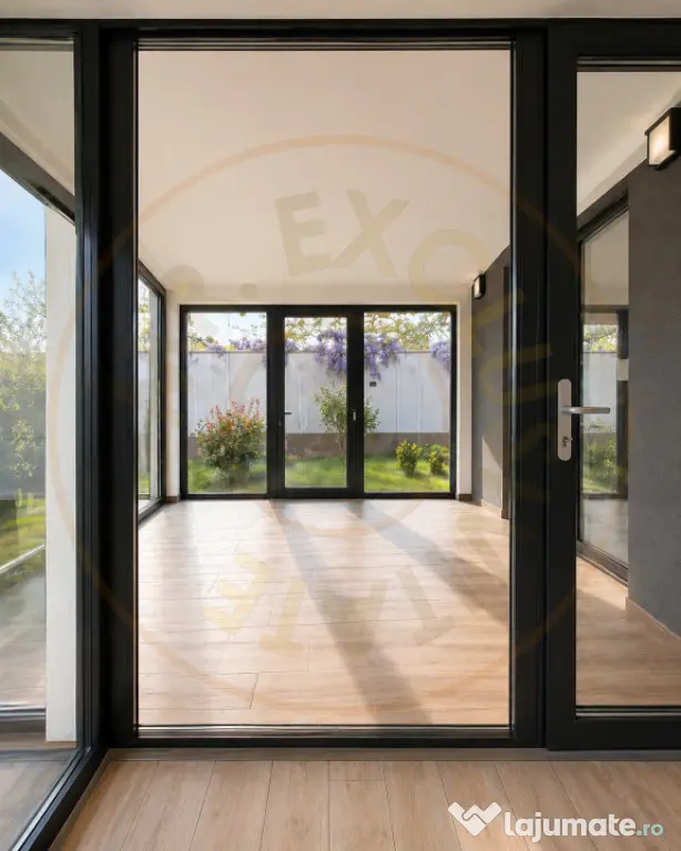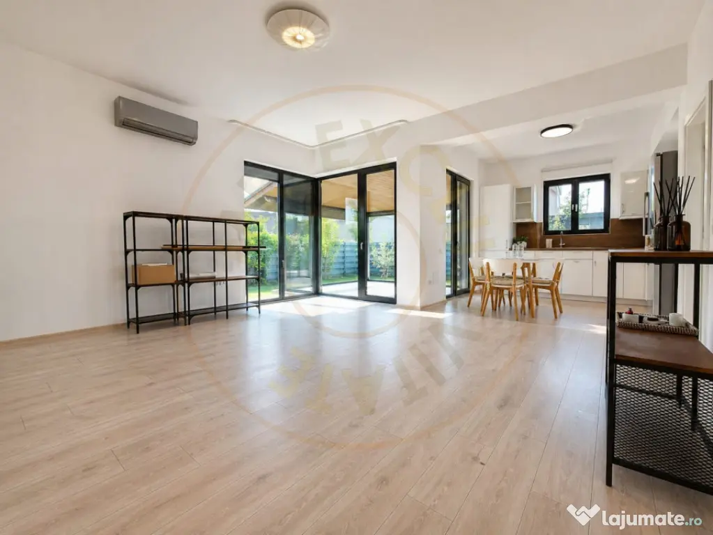 Casa este construită în 2023, cu o suprafață utilă de 100 mp, și se află într-un ansamblu rezidențial cu poarta automata, unde traficul este redus. Este un mediu potrivit pentru familii, unde copiii se pot juca în voie, în siguranță, dar și pentru cei care își doresc mai multă intimitate decât într-o zonă aglomerată.