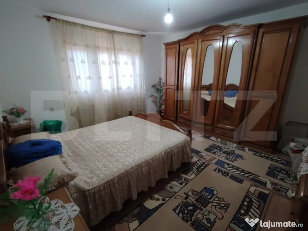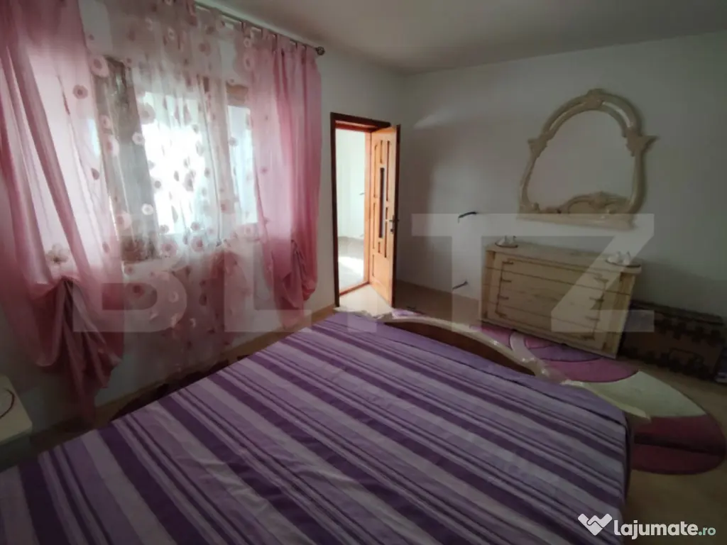 Blitz va propune spre achizitie o casa pe parter+etaj, situata in cartierul Brestei, in zona Bisericii. Suprafata casei desfasurata este de 214 mp, iar amprenta la sol este de 110 mp. Casa a fost construita in anul 2001, pe un teren in suprafata de 457 mp. In curte avem si o anexa care poate fi folosita ca garaj si spatiu depozitare, in suprafata de 25 mp. Casa este construita din BCA si are acoperis din tigla, iar geamurile si usile sunt din lemn masiv. Compartimentare: - la parter: un hol mare, un living spatios, o baie, un dormitor, o bucatarie cu o camera tehnica / debara / camera depozitare - la etaj: un living, doua dormitoare, fiecare cu cate un balcon, o baie ( nefinisata ) accesibila din hol Proprietatea beneficiaza de toate utilitatile si se preda mobilata si utilata, conform fotografii. Cu mai multe detalii, va asteptam sa programam o vizionare la aceasta locatie! Cod ofertă / ID BLITZ: P156652 Id intern: P156652 Număr Băi: 2 Curent Apă Canalizare Gaz