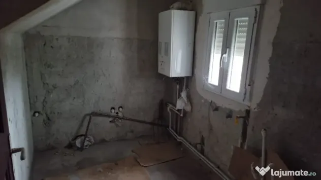 Casa este alcatuita din 12 camere, 2 bucatarii, 2 bai si 2 balcoane, dispune de 2 centrale termice si este racordata la reteaua de apa si gaze. Geamurile sunt din termopan si dur aluminiu, oferind izolatie fonica. Proprietatea este oferita la rosu, necesita finisaj, ideala pentru investitie.