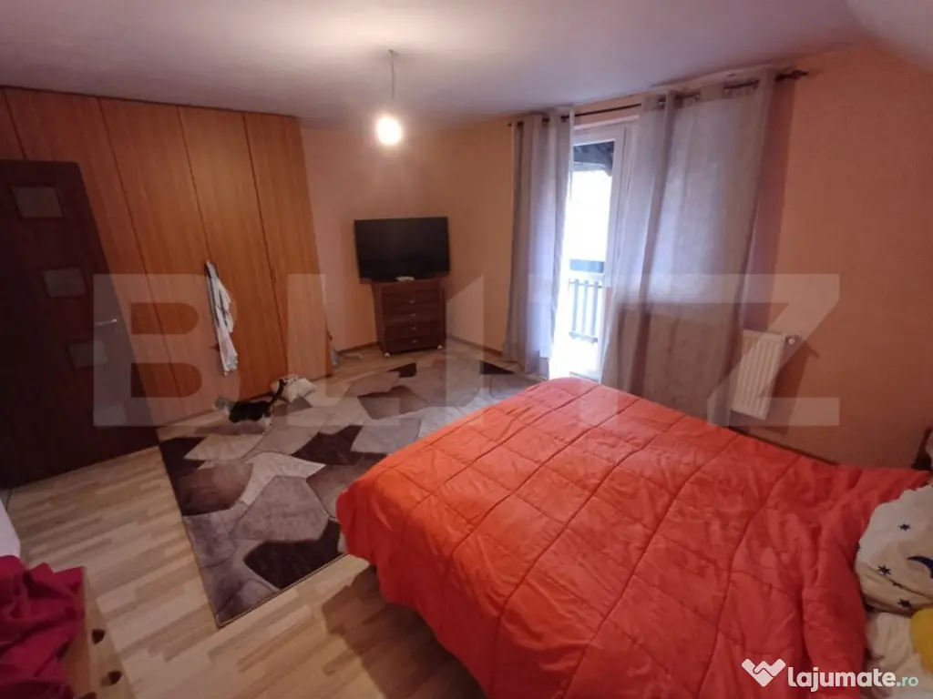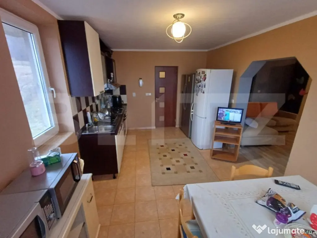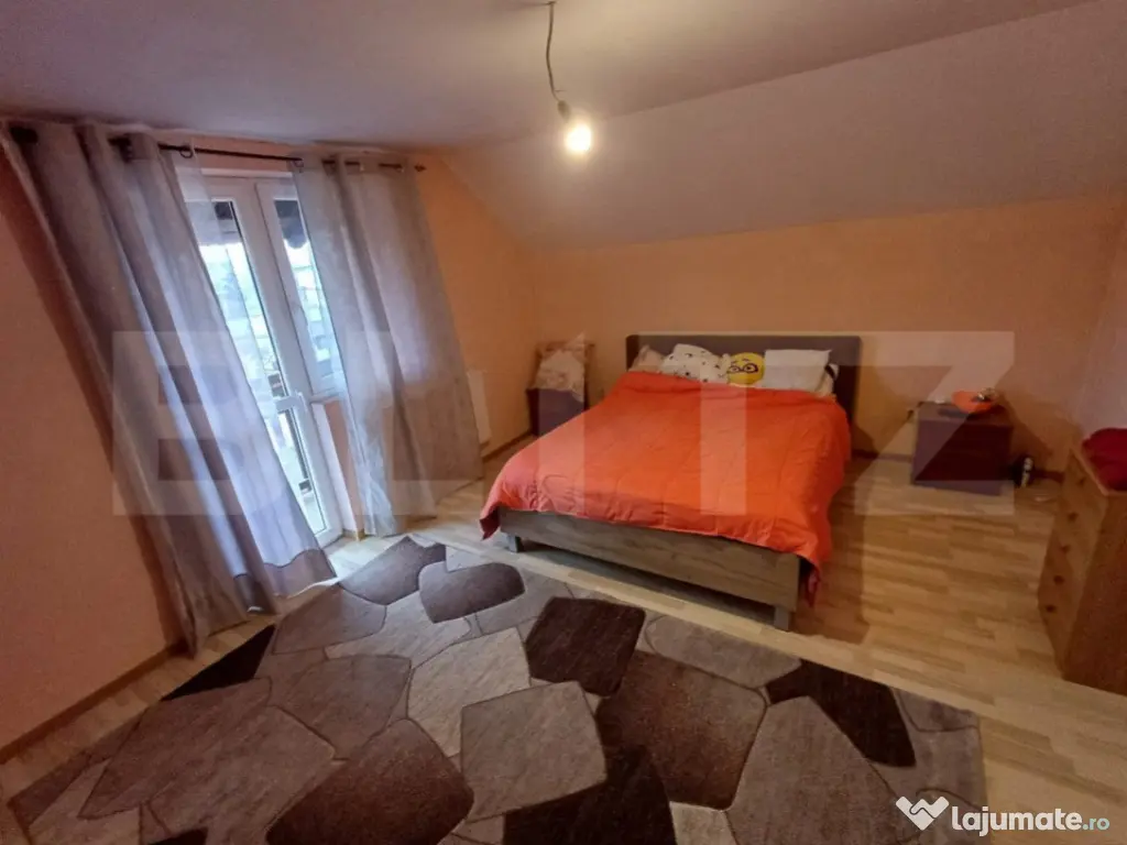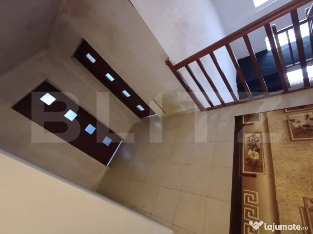 Blitz va prezinta o casă de vânzare cu o suprafață utilă de 420 mp, ideală pentru familii mari sau investiții. Locuința dispune de 6 camere, incluzând 4 dormitoare spațioase, o bucătărie modernă și 2 băi. Amplasată pe un teren liber de 950 mp, proprietatea oferă atât un spațiu generos în interior, cât și un teren exterior vast, perfect pentru diverse activități recreative. Construită în 2017, casa este izolată cu polistiren de 5 cm, asigurând un confort termic ridicat pe tot parcursul anului. Acoperișul este realizat din Ondulin, material durabil și rezistent. De asemenea, imobilul beneficiază de două terase: una deschisă, pentru momente de relaxare în aer liber, și una închisă, ideală pentru zilele mai răcoroase sau pentru a crea un spațiu de relaxare suplimentar. Casa are și potențialul de a fi apartamentată, fiind o opțiune excelentă pentru investiție sau pentru a crea mai multe unități locative. Nu ratați ocazia de a achiziționa acest imobil modern, cu multiple opțiuni de amenajare și extindere. Cod ofertă / ID BLITZ: P137833 Id intern: P137833 Număr niveluri imobil: 1 Număr Băi: 2 Nr. locuri parcare: 2 Curent Apă Canalizare Gaz