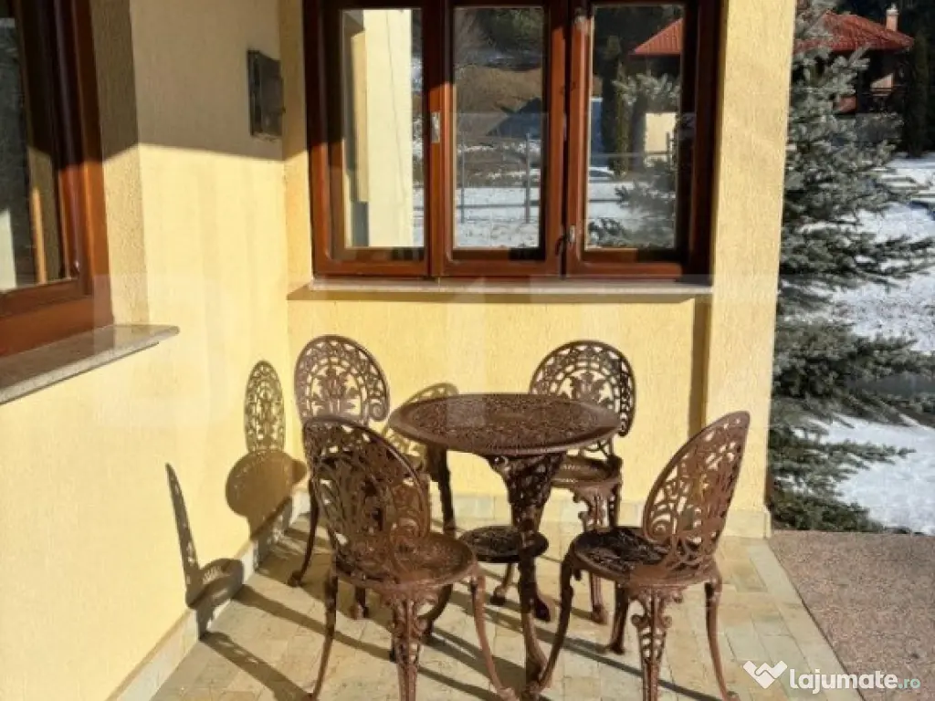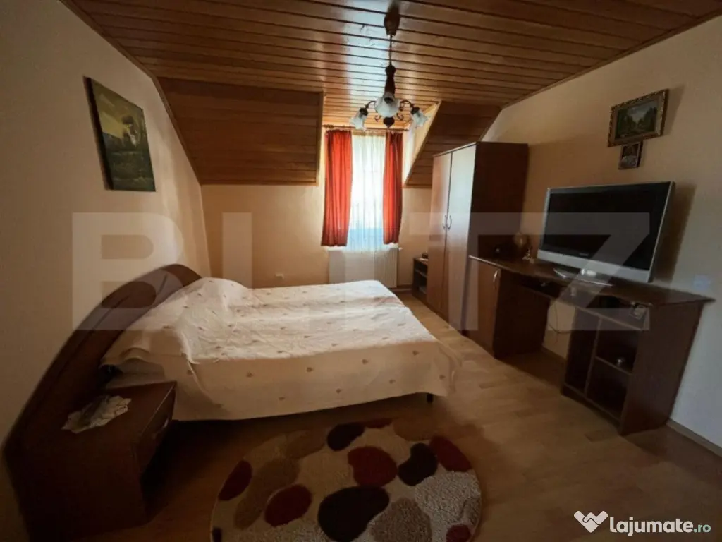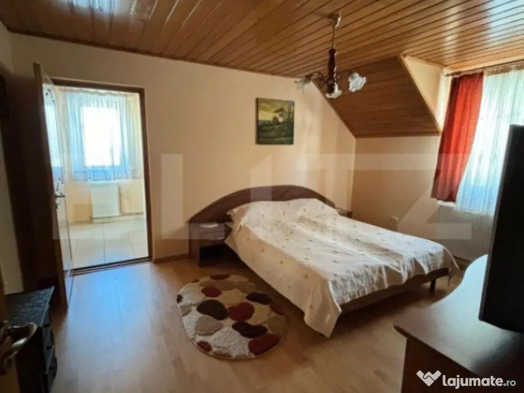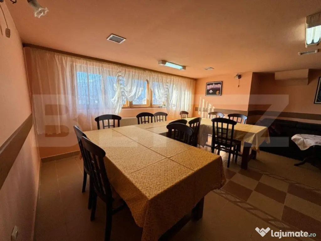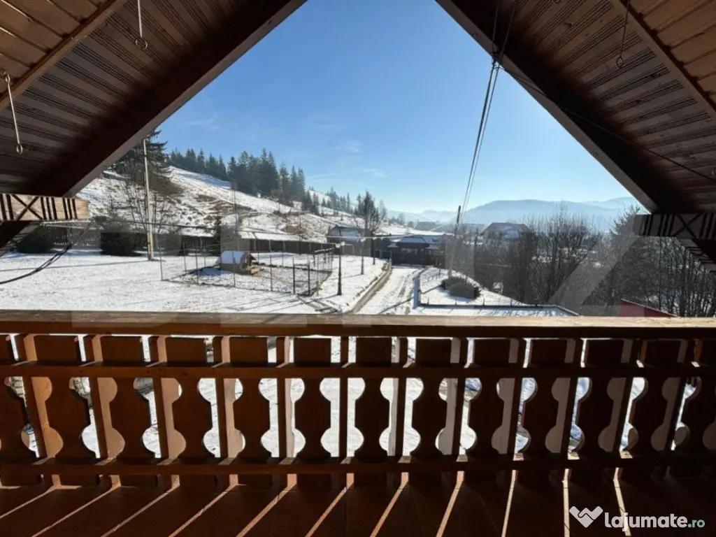 Vă prezintăm o fermecătoare casă de vacanță cu regim de inaltime P+1+M situată în Vatra Moldovitei, un loc ce îmbină tradiția autentică cu confortul modern. Cu o suprafață generoasă de 265 de metri pătrați, această proprietate impresionantă oferă 7 camere spațioase și 5 băi, fiind ideală pentru petrecerea timpului cu familia și prietenii. Priveliștea panoramică oferită de terasele și balcoanele cu o suprafață totală de 60 de metri pătrați adaugă un plus de eleganță și relaxare, creând un cadru perfect pentru a savura răsăriturile și apusurile spectaculoase ale zonei. Cu un teren generos de 8900 de metri pătrați, această casă oferă o curte imensă, perfectă pentru activități recreative și relaxare în aer liber. În grădina bine îngrijită, veți descoperi un foisor amenajat, ideal pentru momente de relaxare și socializare într-un cadru natural. Pentru cei care iubesc gătitul în aer liber, proprietatea include un grătar barbecue, pregătit pentru seri de distracție culinară în mijlocul naturii. Magaziile asigură spațiu suplimentar de depozitare pentru echipamente sportive sau alte obiecte personale. Cu o centrală termică nouă, veți beneficia de confort termic în orice sezon, asigurându-vă că fiecare ședere este plăcută și relaxantă. Această proprietate de vis este situată într-o zonă turistică înfloritoare, oferind acces ușor la atracțiile locale, tradițiile autentice și frumusețea naturală a Vatrei Moldovitei. O oportunitate unică pentru cei care caută o casă de vacanță elegantă și confortabilă în inima naturii autentice. Cod ofertă / ID BLITZ: P101036 Id intern: P101036 Număr niveluri imobil: 2 Număr Băi: 5 Nr. locuri parcare: 4