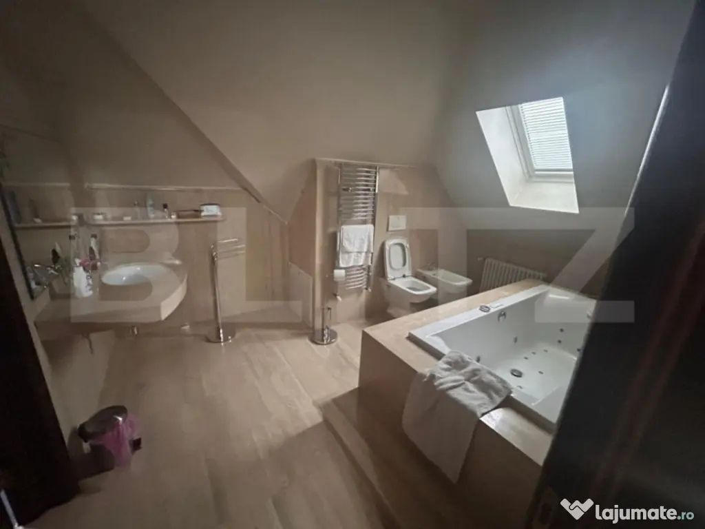 Blitz vă propune spre vânzare o casă realizată din cele mai de calitate materiale , într- o zonă retrasă., in Dumbrăvița Compartimentarea inteligentă pe 3 niveluri, 360 mp, 120 mp pe fiecare nivel: • Demisol: dressing, cameră tehnică, 2 incaperi , garaj. • Parter: living elegant cu șemineu electric, bucătărie ultramodernă, dormitor cu baie cu cadă cu hidromasaj, baie. • Mansardă : 3 dormitoare luminoase, 2 băi cu cadă de hidromasaj. Dotări de lux: • Piscină exterioară• Terase ample pentru relaxare și socializare. • Garaj cu poartă automatizată • Supraveghere video . • Finisaje premium: mobilier lemn masiv de colecție, uși lemn masiv, travertin si marmura a fost adusă din Italia• Foisor gata utilat . Se vinde complet mobilată și utilată, gata pentru a oferi noului proprietar o experiență de viață luxoasă și exclusivistă. O reședință unică, unde eleganța, tehnologia și confortul se întâlnesc la cel mai înalt nivel. Cod ofertă / ID BLITZ: P157957 Id intern: P157957 Număr niveluri imobil: 2 Număr Băi: 5 Curent Apă Canalizare Gaz Sistem irigaţie Climă