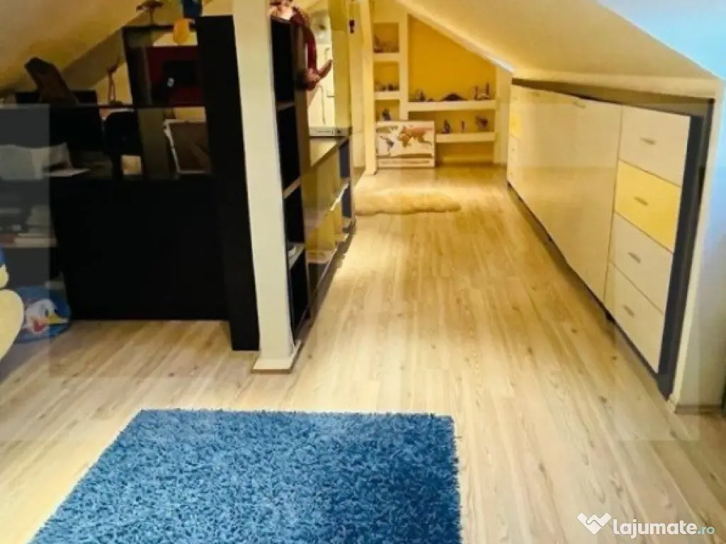 Blitz propune spre vanzare proprietate de lux in zona Bucium in orasul Iasi. Proprietatea dispune de un teren cu o suprafata totala de 1044 mp, gradina amenajata, foisor din lemn (40 mp), gratar din caramida, cabana pentru depozitare si un loc de joaca pentru copii. Casa este compusa din: -Demisol: 83 mp, camera tehnica, spatiu de depozitare, dressing si garaj cu loc pentru 2 masini. -Parter: 89 mp, hol, bucatarie, living, loc de luat masa cu acces direct pe terasa acoperita, baie -Etaj: 94 mp, 3 dormitoare (din care unul cu acces in mansarda), 2 bai si 2 balcoane -Mansarda: 42 mp, amenajata, mobilata Proprietatea dispune de sistem de supraveghere video exterior si sistem de alarma interior, sistem de irigare si fantana proprie. Casa se afla intr-o zona rezidentiala linistita, aproape de strada principala unde gasim spatii comerciale, gradinite, statii de mijloace de trasnport comun. Cod ofertă / ID BLITZ: P10326 Id intern: P10326 Număr niveluri imobil: 2 Număr Băi: 3 Nr. locuri parcare: 2