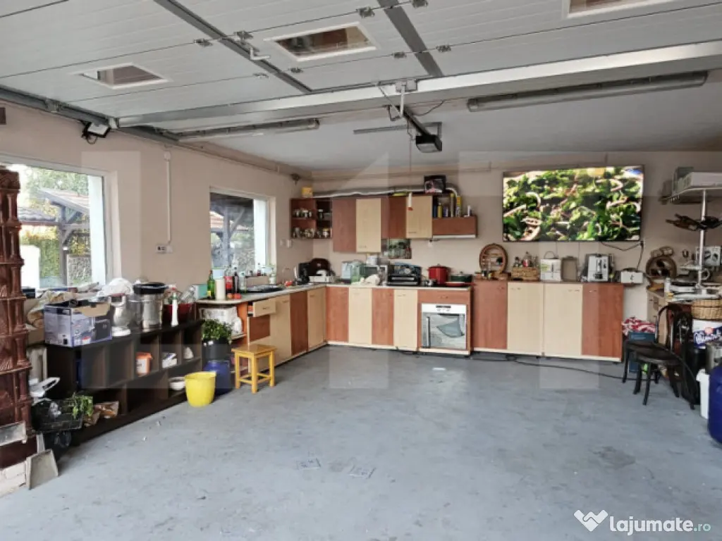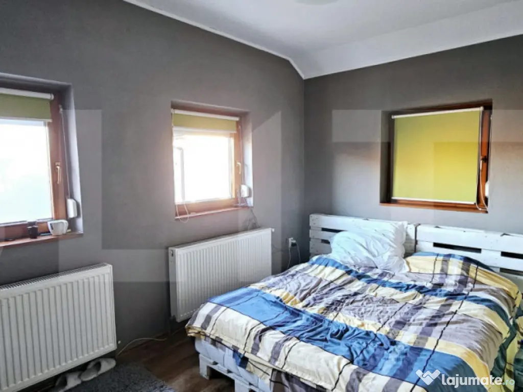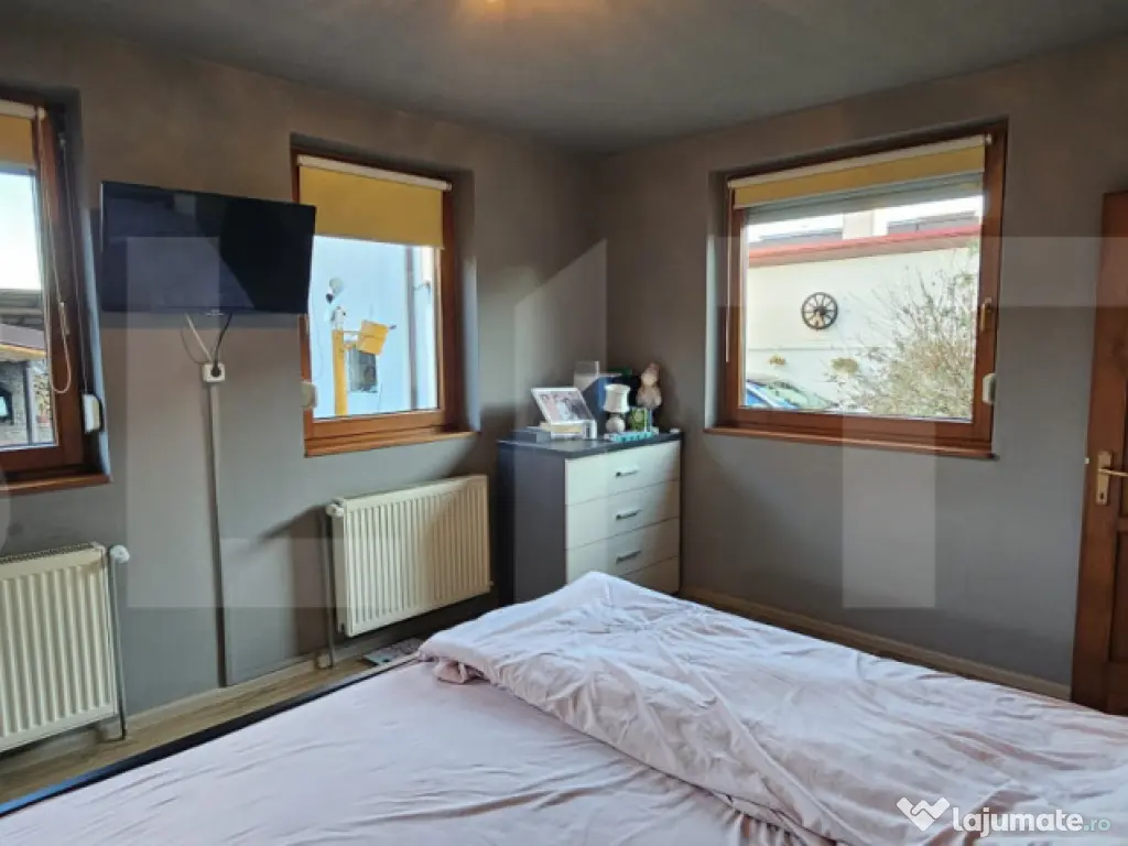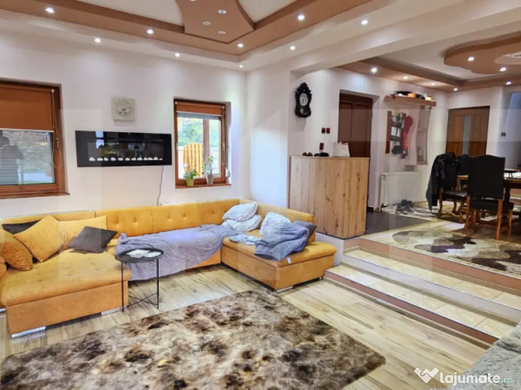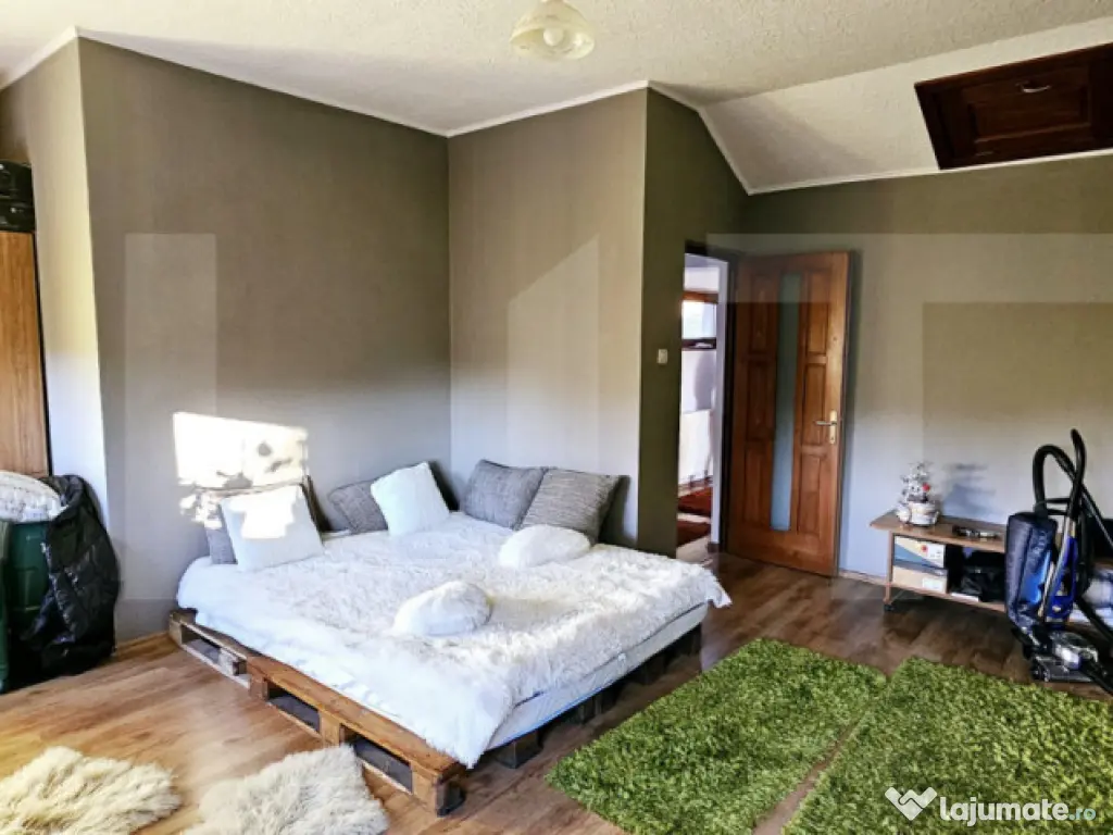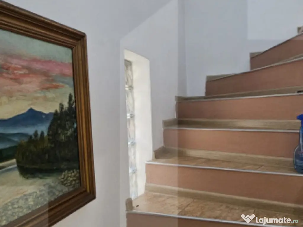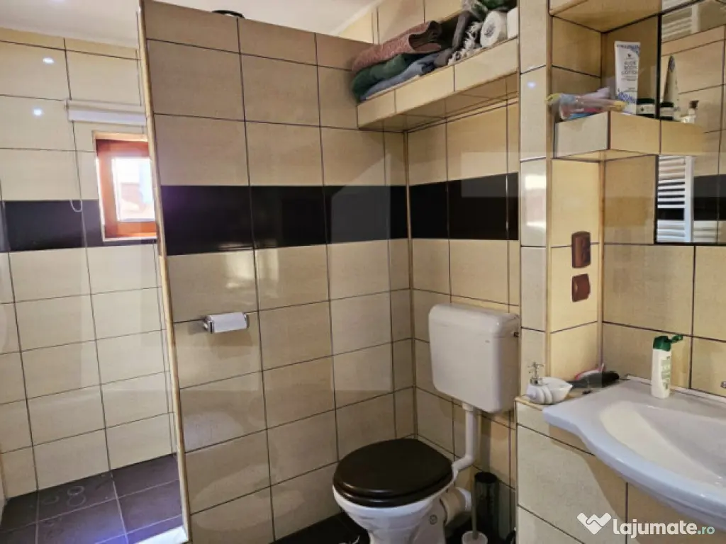 Blitz va prezinta o casă individuală de vânzare în Sfântu Gheorghe, strada Erege – zonă semicentrală, aproape de toate punctele de interes din oraș. Proprietatea are un teren generos de 823 mp, cu o amprentă la sol de 118 mp și o suprafață construită desfășurată de 257,45 mp, compartimentată astfel: Demisol: cameră tehnică și mai multe spații de depozitare. Parter: bucătărie, living, spațiu de luat masa, dormitor, baie principală, baie de serviciu, hol și terasă. Mansardă: trei dormitoare și o baie. Casa oferă numeroase facilități care asigură confort și relaxare: saună, ciubăr, foișor, iaz cu pești, grădină amenajată în față și o a doua grădină în spate cu pomi fructiferi și spațiu pentru grădinărit. De asemenea, dispune de un garaj dublu cu telecomandă, amenajat cu bucătărie de vară și zonă pentru gătit. Construcția este realizată din cărămidă, iar încălzirea se face cu centrală termică pe lemne. Utilități: apă, canalizare, curent electric, internet; gazul este disponibil la poartă, fiind necesară doar semnarea unui contract cu furnizorul. În spatele proprietății, deasupra garajului, se află o locuință suplimentară construită tot din cărămidă, cu o suprafață de 40,5 mp, compusă din dormitor și baie, având sistem de încălzire propriu, prin calorifere alimentate de o sobă pe lemne. Proprietatea se pretează perfect atât pentru locuință familială, cât și pentru investiție, oferind un spațiu intim, bine organizat și numeroase zone de relaxare. Comision 0% pentru cumpărător. Pentru vizionare sau detalii suplimentare, vă rugăm să ne contactați. Cod ofertă / ID BLITZ: P156354 Id intern: P156354 Număr niveluri imobil: 1 Număr Băi: 4 Nr. locuri parcare: 4 Curent Apă Canalizare