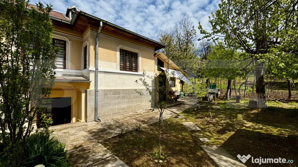 Curtea este frumos amenajată și include grădină de flori, vie, zonă pentru cultivat legume si căpșuni, pomi fructiferi și o pajiște superbă, ușor înclinată, care oferă o panoramă deschisă asupra împrejurimilor și poate fi transformată cu ușurință într-o livadă. De asemenea, proprietatea dispune de anexe utile pentru activități gospodărești.