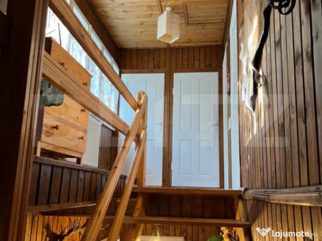 Blitz propune spre vânzare o casă din lemn cu suprafața utilă de 118 mp, situată într-o zonă montană deosebită din Vatra Dornei, ideală pentru locuire permanentă, casă de vacanță sau exploatare turistică. Construcția îmbină farmecul specific zonei de munte cu elemente de confort modern. Casa este structurată eficient, având la parter o zonă de zi cu bucătărie open space, baie și hol, iar la etaj sunt amenajate două dormitoare, spații luminoase și primitoare, potrivite pentru odihnă și relaxare. Imobilul beneficiază de izolație exterioară din lemn, asigurând un climat interior plăcut pe tot parcursul anului. Excepție fac baia și bucătăria de la parter, care sunt realizate din cărămidă și BCA, oferind un plus de rezistență și funcționalitate în zonele cu umiditate crescută. Din punct de vedere al sistemelor de încălzire, casa este dotată cu centrală electrică, centrală pe gaz (nebranșată) și șemineu, element care completează perfect atmosfera montană și oferă atât confort termic, cât și un ambient cald și autentic. Gazul este disponibil la poartă, facilitând racordarea ulterioară, în funcție de preferințe. Proprietatea dispune, de asemenea, de fântână proprie, un avantaj important pentru independență și costuri reduse de întreținere. Prin caracteristicile sale, această casă reprezintă o oportunitate excelentă pentru cei care își doresc un refugiu montan autentic, într-o stațiune cu potențial turistic ridicat, dar și pentru investitori interesați de închiriere în regim turistic. Pentru mai multe detalii și programarea unei vizionări, vă stăm la dispoziție. Cod ofertă / ID BLITZ: P161159 Id intern: P161159 Număr Băi: 1 Nr. locuri parcare: 1 Curent Apă Canalizare
