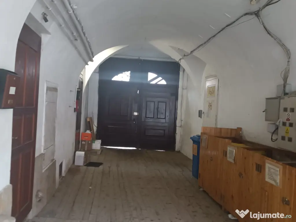 Casă de vânzare în centrul Sibiului, Str. General Magheru cu suprafața utilă de 40 mp, formată din 1 cameră de 19,4 mp, bucătărie de 10,5 mp, hol de 3,2 mp, cămară de 6,2 mp. Deține și pivniță de 6,2 mp cu hol comun de 3,3 mp. Suprafața întreagă a apartamentului este de 50 mp.