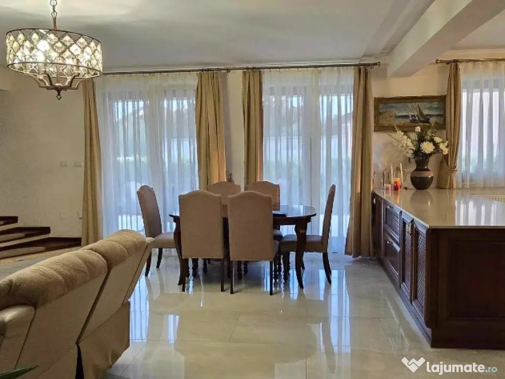 Compoziția casei este una atent gândită toate spațiile fiind generoase, începând cu holul de intrare, holul separat care duce spre zona unei încăperi generoase,baie de parter, dressing spațios de hol, o bucătărie separată, cameră tehnică, ieșire în terasă, un living ultrageneros luminos cu spații vitrate mari , bucătărie ultra dotata, loc de luat masa, orientare spre curtea interioara unde avem deschidere și spre terasa corpului principal al imobilului. Cele doua terase imprejmuiesc doua laturi ale casei, au orientări diferite răsărit și sud.