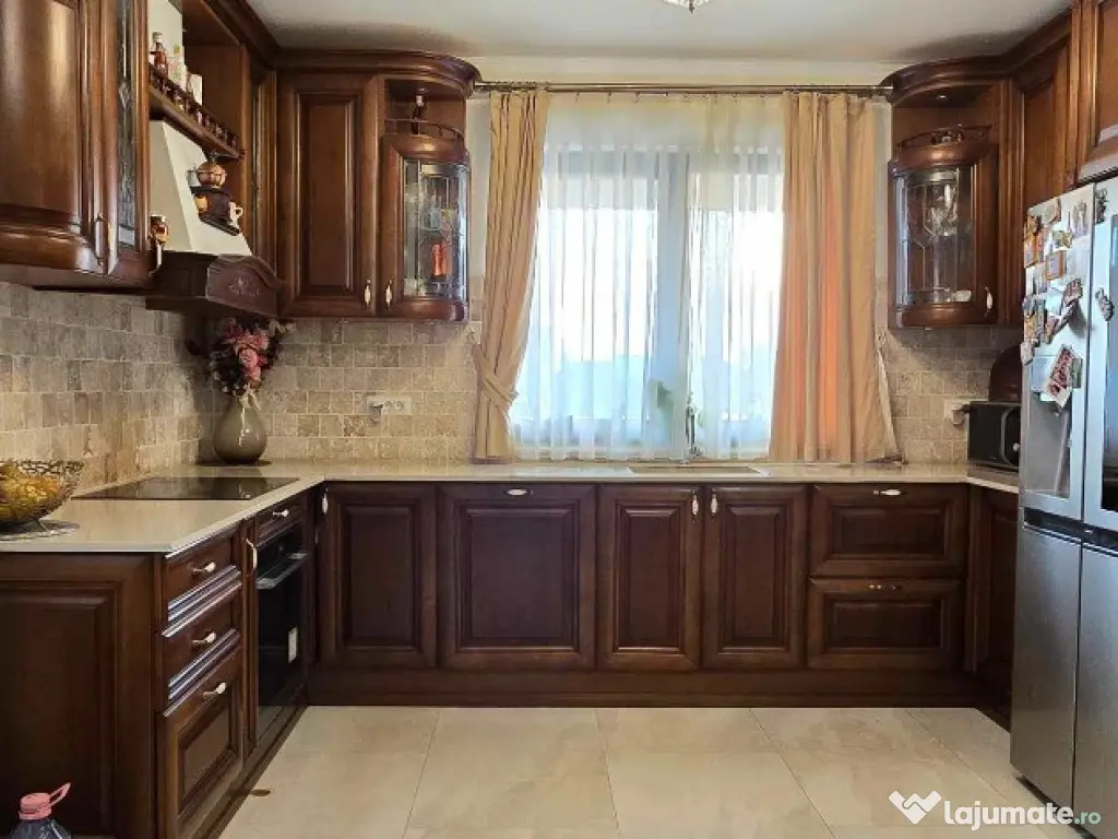 Așa cum spuneam mai sus, arhitectura și finisajele, design-ul și amenajarea acestei case are influențe clasice și mediteraneene , finisaje de calitate, mobilier clasic/modern, totul făcut pe comandă, în mare parte lemn masiv și stratificat , uși din lemn masiv stratificat, mobilier pentru dormitoare de la branduri de top. Ca și sisteme de energie pentru încălzire regăsim o varietate enumerand: pompa de căldură profesionale cu panouri fotovoltaice cu putere de aprox 17,6 kw, recent s-a introdus și rețeaua de gaz. Izolație suplimentară în pod cu vată bazaltica. Toate geamurile sunt din lemn masiv stratificat , calitate fara concurență. Curtea este amenajata atât partea de intrare cât și spațiul propriu zis al curții,pavaj travertin , la fel și terasele de imprejmuire a casei , spații bine delimitate, sistem de irigație…. plante ornamentale , etc.