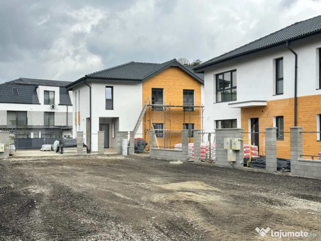 Blitz va prezinta casa tip duplex in localitatea Livezeni,la 10 minute de Targu Mures, situata in ansamblu rezidential nou. Constructia este una deosebita,compartimentata modern.Casa este in stadiu de finisare,finisajele urmand sa fie alese de catre client,incluse in pretul afisat. Dotata cu incalzire in pardoseala,izolatie exterioara din celuloza,pod utilizabil gata podit. Terasa disponibila,gardul curtii urmeaza sa fie finalizat. Locuri de parcare in fata casei,starda unica pavata, pentru 5 familii care vor locui aici. Termenul de predare este martie 2026. Casa se preda la cheie. Cod ofertă / ID BLITZ: P155349 Id intern: P155349 Număr niveluri imobil: 1 Număr Băi: 2 Nr. locuri parcare: 2 Curent Apă Canalizare Gaz