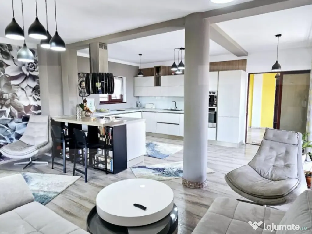 BLITZ vă propune spre vânzare o oportunitate excelentă pentru cei care cauta confortul, eleganța și liniștea unei locuințe moderne, într-un cadru naturalunic. Proprietatea este situată în prestigioasa zonă Evergreen – fostul livadă al orașului – o oază de liniște, ideală pentru cei care își doresc un cămin departe de agitația urbană, dar aproape de facilitățile orașului. Cartierul este compus exclusiv din case, beneficiind de intimitatea oferită de vecinătatea pădurii. Casa se remarcă prin calitatea materialelor folosite, arhitectura modernă, compartimentare funcțională și confortabilă. Interiorul acestei locuințe impresionează prin luminozitatea naturală și atmosfera primitoare, fiind amenajat într-un stil contemporan, cu spații largi și bine structurate. Bucătăria modernă, complet utilată și foarte încăpătoare, se îmbină perfect cu zona de living într-un open-space elegant și funcțional. Mobilierul rafinat, electrocasnicele de ultimă generație și iluminatul ambiental contribuie la crearea unui cadru călduros și relaxant, ideal pentru momentele petrecute în familie sau alături de prieteni. Camera de jos este ideal pentru birou/camera de oaspeti/camera de fitness. La mansarda se găsesc trei camere de dormit confortabile, o baie si in hol un dulap spatios perfect pentru o familie. ???? Detalii generale: • Teren generos de 1.000 mp • Suprafață utilă: 260 mp • Compartimentare pe 3 niveluri: Subsol + Parter + Mansardă • Terasă spațioasă de orientare sudica si balcon pe doua laturi a casei. • Bucătărie de vară complet utilată, cu centrală proprie, grătar și cuptor de pâine – ideală pentru toate anotimpurile ???? Dotări tehnice și facilități: • Încălzire prin centrală pe peleți, panou solar pentru apă caldă + boiler • Sistem de dedurizare a apei • Apă de rețea, fosa septică ecologică • Saună cu aburi la subsol, alături de duș, cameră tehnică și garaj ????️ Compartimentare interioară: • Subsol: Garaj, cameră tehnică, saună, duș, spațiu de depozitare • Parter: Living cu ieșire pe terasă și grădină, bucătărie open-space, cameră, baie • Etaj: 3 dormitoare, baie cu cadă Bucataria de vara, care poate fi folosita si iarna, avand centrala proprie si generoasa de 60mp, e o piatra pretioasa al proprietatii. Are vatra de foc cu cuptor de paine, camera technica separata si o toaleta de serviciu. Are centrală proprie cu peleti. Un loc ideal pentru întrunirile familiale și amicale. Atat casa cat si anexa sunt finisate, dotate si utilate folosind materialele de cea mai buna calitate, design interior cu gust deosebit, fiecare colt avand feeling de “OAO”. Curtea este amenajat cu alei pavate, spații verzi generoase și zone de relaxare, numeroase specii de plante decorative si comestibile (capsuni, mure si zmeura), arbori și arbuști, livadă cu pomi. Casa se vinde complet utilata si semimobilata. Detalii technice: Incalzire: centrala termica cu brichete Panou solar pentru apa calda+Boiler Dedurizator pentru apa Apa de retea, canalizare cu fosa septica Sauna de abur Dotări premium: Bucataria: mobila ROVERE Termopane SALAMANDER Această proprietate oferă un mix perfect între lux, funcționalitate și natură. Este ideală pentru cei care vor o casă „gata de locuit”, unde fiecare detaliu a fost gândit pentru confortul maxim. Pentru mai multe detalii sau pentru a programa o vizionare, nu ezitati sa ne contactati! Cod ofertă / ID BLITZ: P144244 Id intern: P144244 Număr niveluri imobil: 1 Număr Băi: 3 Curent Apă