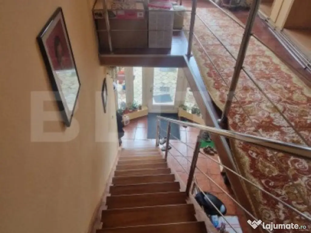Vând casă D+P+E situată într-o zonă centrală, pe o stradă principală din Centrul Civic, ideală atât pentru locuit, cât și pentru activități comerciale, datorită spațiului comercial inclus în preț. Proprietatea este formată dintr-o casă de locuit și un spațiu comercial alăturat, oferind multiple posibilități de utilizare. Casa dispune de 4 camere spațioase, dintre care 3 dormitoare, unul având baie proprie și un dressing generos. De asemenea, include o bucătărie modernă, 2 băi, un hol mare și un beci de 24 mp. Spațiul comercial anexat este format dintr-o cameră de 40 mp, 2 băi și un beci generos, fiind ideal pentru diverse activități comerciale. Construcția este solidă, realizată din cărămidă și bolțari, având plăci de beton între etaje și o placă turnată spre pod. Izolația spre pod este realizată cu vată bazaltică de 10 cm, izolatia exterioara beneficiază de izolație cu polistiren de 10 cm. Casa are două centrale termice și utilități separate între locuință și spațiul comercial. Curtea permite parcarea a două mașini, iar în fața casei există un spațiu concesionat, îngrădit pentru parcare privată, unde se pot parca încă 5 autoturisme. Locația este excelentă, cu acces rapid la punctele de interes din oraș, în apropiere de clinica Synevo și alte spații comerciale. Suprafața utilă a casei este de 156 mp, iar spațiul comercial are 40 mp. Terenul aferent proprietății are 218 mp. Casa a fost renovată în 2014 și se vinde complet mobilată și utilată. Actele sunt în regulă. Vă aștept la vizionare! Cod ofertă / ID BLITZ: P71830 Id intern: P71830 Număr niveluri imobil: 1 Număr Băi: 5 Nr. locuri parcare: 5 Curent Apă Canalizare Gaz