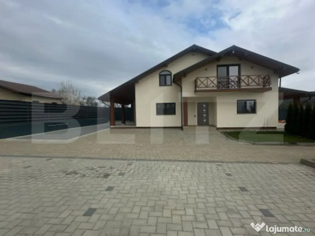Blitz vă prezinta o proprietate completă, perfectă pentru o familie care își dorește spațiu, intimitate și facilități premium! Casa dispune de o suprafață generoasă de teren (1600 mp), și vine echipată cu tot ce este necesar pentru un trai confortabil și eficient. ???? Detalii imobil: Compartimentare eficientă: ???? 4 dormitoare | ???? 3 băi | ???? 1 bucătărie complet mobilată 2 terase acoperite, ideale pentru relaxare indiferent de vreme Parchet masiv, finisaje de calitate superioară Geamuri cu sticlă triplă – izolare termică și fonică excelentă ???? Exterior și curte: Teren generos de 1600 mp Gazon întreținut cu sistem de irigații automatizat pentru tuya și peluză Fântână proprie (aprox. 30 m adâncime) Fosa septică proprie Nocturnă instalată pentru zona cu gazon Alee iluminată, curte, parcare și stradă pavate Poartă automatizată ???? Facilități & utilități: Centrala termică pe peleți – eficiență și autonomie ridicată Ventilație integrată pentru aer proaspăt în toată casa Sistem de alarmă + camere video pentru siguranță maximă Jaluzele montate pentru confort și control al luminii ???? Utilități la poartă: Gaz Apă curentă Canalizare Această proprietate este ideală pentru cei care caută liniște, natură și funcționalitate modernă. Fiecare detaliu a fost gândit pentru confortul pe termen lung, eficiență energetică și siguranță. ???? Pentru mai multe detalii și programare vizionare, nu ezitați să ne contactați Cod ofertă / ID BLITZ: P143573 Id intern: P143573 Număr niveluri imobil: 1 Număr Băi: 3 Nr. locuri parcare: 3 Curent Apă Canalizare Sistem irigaţie