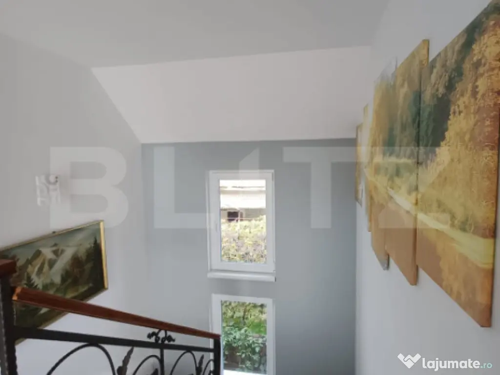Blitz vă propune spre vânzare o proprietate deosebită, cu suprafata utila de 202 mp locuibili, amplasata pe un teren de 712 mp (reprezentand 291 mp - curti constructii si 421 mp - livada), situata într-o zonă linistita cu potențial remarcabil pentru investiții. Imobilul este construit in 2010, din BCA si are regim de inaltime D+P+M. Demisolul este compartimentat: intr-o incapere avem pivnita si in alta camera tehnica. Hol cu scari interioare. La parter avem un hol spatios, la intrare, camera de zi spatioasa, o bucatarie cu camara si iesire pe terasa din curte, 1 camera si 1 baie. La etaj avem un hol cu iesire pe balcon, 3 dormitoare, din care unul cu dressing si iesire pe balcon stil frantuzesc, o baie. Podul este mansardat si are o suprafata generoasa. Proprietatea are geamuri termopan, este izolata la exterior cu polistiren de 10 cm ESP 100. Incalzirea se face cu centrala termica pe gaz. Proprietatea este dotata cu incalzire in pardoseala; la parter incalzire in pardoseala Uponor, iar la etaj incalzire in pardoseala Rehau cu automatizare Rehau. In fiecare camera temperatura se poate regla separat, fiind dotate cu termostate individuale. Tavanul intre parter si mansarda este izolat cu vata minerala si rigips, iat tavanul intre mansarda si pod cu vata minerala de 15 cm. Acoperis din tigla. Curtea cu trotuare, pavata partial cu zona de spatiu verde si barbeque. Terasa este spatioasa cu zona de luat masa. Descoperiti oportunitatea unica de a deveni proprietarul unei case de vis in Mihai Viteazu, o locatie care combina perfect intimitatea unui camin linistit cu acces facil la facilitatile esentiale. Aceasta proprietate impresionanta, se afla in apropiere de Cheile Turzii, ceea ce o face ideala atat pentru a fi transformata intr-o pensiune primitoare, cat si pentru a gazdui o familie numeroasa, datorita designului sau inteligent si spatiului generos. Nu pierdeti ocazia de a vizita si, eventual, de a achizitiona aceasta casa splendida la doar 12 minute de Cheile Turzii, un spatiu unde confortul, eleganta si functionalitatea se intalnesc armonios. Cod ofertă / ID BLITZ: P155700 Id intern: P155700 Număr niveluri imobil: 1 Număr Băi: 2 Curent Apă Canalizare Gaz