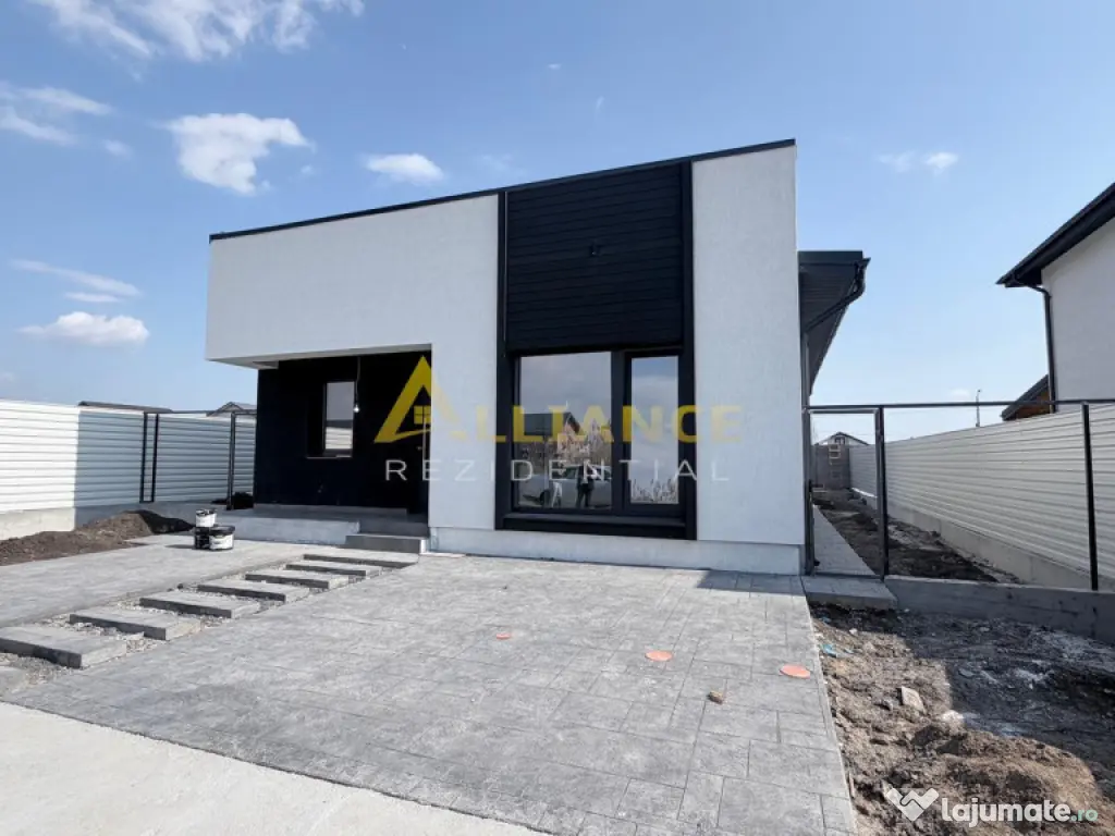 Va prezentam o casa deosebita, construita pe un singur nivel, proiectata cu atentie pentru confort, functionalitate si un stil contemporan, situata pe un teren generos de 335 mp. Caracteristici principale: bull; 4 camere spatioase, dintre care 3 dormitoare, unul matrimonial cu dressing generos si baie proprie bull; 2 bai moderne, realizate cu finisaje de calitate bull; Incalzire in pardoseala, asigurand confort termic optim pe intreaga suprafata a locuintei bull; Ferestre tripan, pentru o izolare termica si fonica superioara bull; Placa de beton peste intreaga suprafata a casei, oferind o structura solida si durabila bull; Terasa acoperita pe fatada, ideala pentru relaxare sau socializare bull; Curte amenajata cu beton amprentat, usor de intretinut si cu aspect estetic placut Terenul in suprafata de 450 mp ofera suficient spatiu pentru activitati in aer liber, amenajarea unei zone de gratar, spatiu verde sau proiecte viitoare. Aceasta proprietate reprezinta alegerea ideala pentru o familie care isi doreste liniste, confort si calitate, intr-o locuinta moderna si eficient compartimentata. Pentru vizionari si informatii suplimentare: Rares Nedelcu ndash; 0739 922 901 Număr Băi: 2 Comision cumpărător: 0% Posibilitate parcare: Da Nr. locuri parcare: 1 Curent Gaz