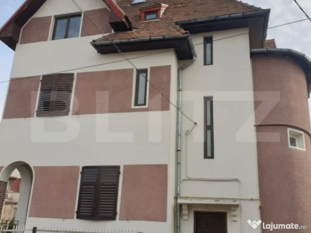 Blitz va propune spre vânzare o vila, situată în centrul orașului Ploiești, într-o zonă de mare interes comercial și cu acces rapid la principalele artere ale orașului. Această proprietate reprezintă o oportunitate pentru investitori, fiind ideală pentru transformarea într-un sediu de birouri, sau alte tipuri de activități economice. Vila impresionează prin detalii arhitecturale, având potențialul a fi utilizata pentru mai multe activități. Imobilul are suprafața utila de 310 mp, compartimentarea interioară permite amenajarea eficiente, cu posibilitatea de a crea un mediu funcțional dispunând pe fiecare nivel de încăperi decomandate. In total sunt 11 încăperi, 7 grupuri sanitare, si holurile aferente. Accesul in imobilul poate fi făcut prin doua intrări separate. Proprietatea are multiple avantaje care pot fi puse in valoare de noul proprietar. Cod ofertă / ID BLITZ: P155599 Id intern: P155599 Număr niveluri imobil: 2 Număr Băi: 7 Nr. locuri parcare: 1 Curent Apă Canalizare Gaz