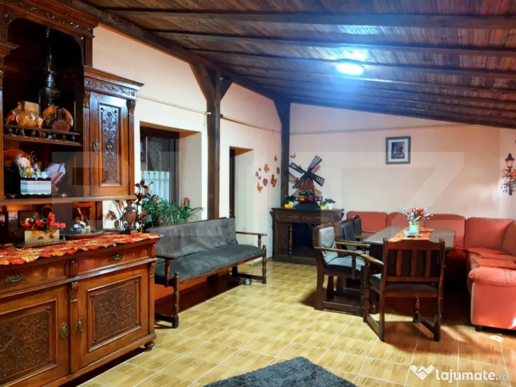 Blitz vă oferă spre vânzare casă individuală spațioasă în vatra veche Dumbrăvița! Locație: Dumbrăvița – zonă liniștită, aproape de Casa Bunicii și mijloace de transport în comun Suprafață teren: 1070 mp Suprafață utilă: aprox. 160 mp Camere: 5 Băi: 3 Clădire anexă: cu bucătărie, cameră, baie, curte separată Curte amenajată: cu grădină, anexe gospodărești Baltă cu pești: 16 mp Utilități: Gaz, curent, apă Compartimentare: Casa principală: Living open-space + bucătărie – 40 mp 3 dormitoare 2 băi 1 hol 1 șpais/cămară/depozitare 1 cameră suplimentară Terasă spațioasă Anexă separată: Bucătărie Cameră Baie Curte proprie Avantaje: Localizare excelentă în vatra veche Dumbrăvița Acces facil către oraș Spațiu verde și intimitate Ideală pentru familie extinsă sau două generații Cod ofertă / ID BLITZ: P146956 Id intern: P146956 Număr Băi: 3 Nr. locuri parcare: 2 Curent Apă Canalizare Gaz Climă