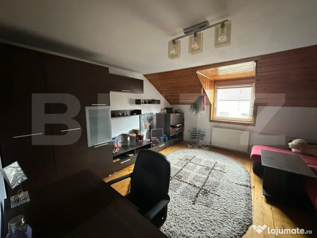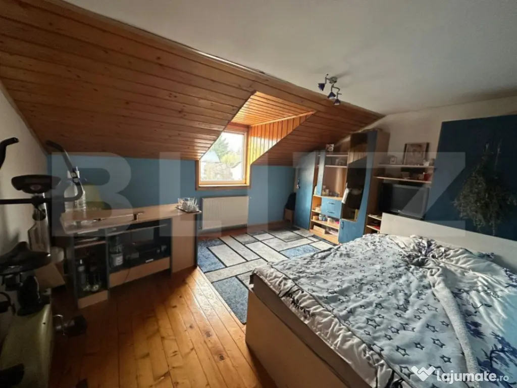 BLITZ va invita sa imbinati TRECUTUL cu PREZENTUL in urmatorul imobil structurat astfel : EXTERIOR: 6 locuri de parcare, Garaj cu pod (spatiu depozitare), curte impartita in 2 jumatati, o parte cu copaci una cu teren pentru cultivat, 1 terasa de 9 mp, 1 terasa de 18 mp PARTER: hol de acces, 1 living cu bucatarie, camara cu dubla aerisire, iesire la terasa, 1 dormitor, 1 baie cu cada cu hidromasaj MANSARDA: acces prin usa glisanta, 3 dormitoare, 1 loja, 1 baie cu dus, 1 Intrare in pod POD: ST= 40 mp cu posibilitate de a construi o alta camera, un viitor MAN CAVE sau spatiu de depozitare izolat cu vata si polistiren EXTRA: curent TRIFAZIC, acoperis din tigla de Bramac din Austria, electrocasnice PREMIUM, incalzirea se face prin centrala proprie + calorifere + semineu living + teracota dormitor 1 + soba loja Va invitam sa spuneti ACASA in aceasta CASA superba ! Cod ofertă / ID BLITZ: P137163 Id intern: P137163 Număr niveluri imobil: 1 Număr Băi: 2 Nr. locuri parcare: 5-10 Curent Apă Canalizare Gaz