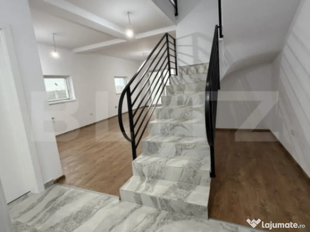 Blitz va propune sa descoperiți o proprietate unică, perfectă pentru cei care își doresc un cămin modern, primitor și construit cu materiale de înaltă calitate. Casa dispune de curte proprie de 350 mp, terasă exterioară acoperită și balcon privat pentru fiecare dintre cele două dormitoare de la etaj. ???? Compartimentare inteligentă Parter: living luminos integrat cu bucătăria – un spațiu deschis, ideal pentru momentele petrecute alături de familie și prieteni. În completare, se regăsesc o cameră tehnică și o baie. Etaj: trei dormitoare spațioase, dintre care unul matrimonial cu baie proprie, plus o baie suplimentară care deservește celelalte două dormitoare. ✨ Dotări și finisaje premium Construcție din cărămidă Porotherm Izolație exterioară de 10 cm pentru eficiență termică Geamuri Salamander cu tripan și sticlă “4 anotimpuri” La bucătărie, sistem modern cu acționare pe șină a geamurilor Balustradă din lemn pentru scara interioară Balcoane cu balustradă din fier forjat Teren împrejmuit cu gard pentru intimitate și siguranță ???? Un cămin gata de mutare – locul perfect unde designul modern, confortul și calitatea construcției se îmbină armonios pentru a-ți oferi viața pe care o meriți. Va invit cu drag sa programați o vizionare! Cod ofertă / ID BLITZ: P150983 Id intern: P150983 Număr niveluri imobil: 1 Număr Băi: 3 Nr. locuri parcare: 2 Curent Apă Gaz