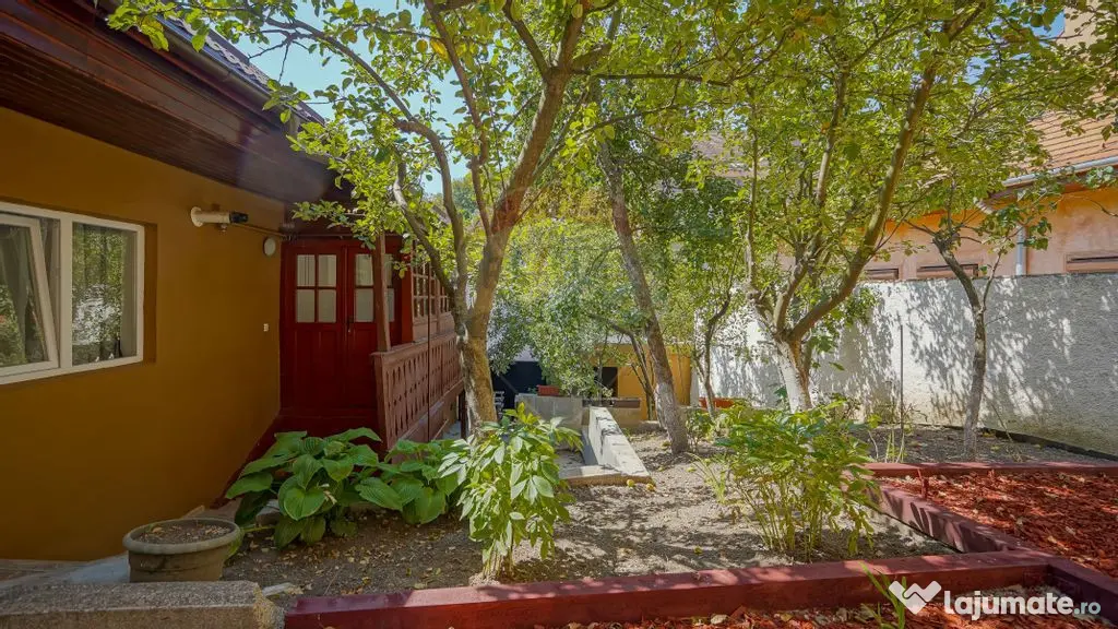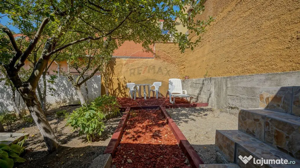 Un aspect deosebit al acestei proprietăți este curtea sa frumos amenajată, în suprafață liberă de 147 mp, un adevărat refugiu de relaxare. Aici veți găsi un spațiu verde, cu locuri de odihnă și pomi fructiferi, ideal pentru petrecerea timpului în aer liber, departe de agitația urbană.
