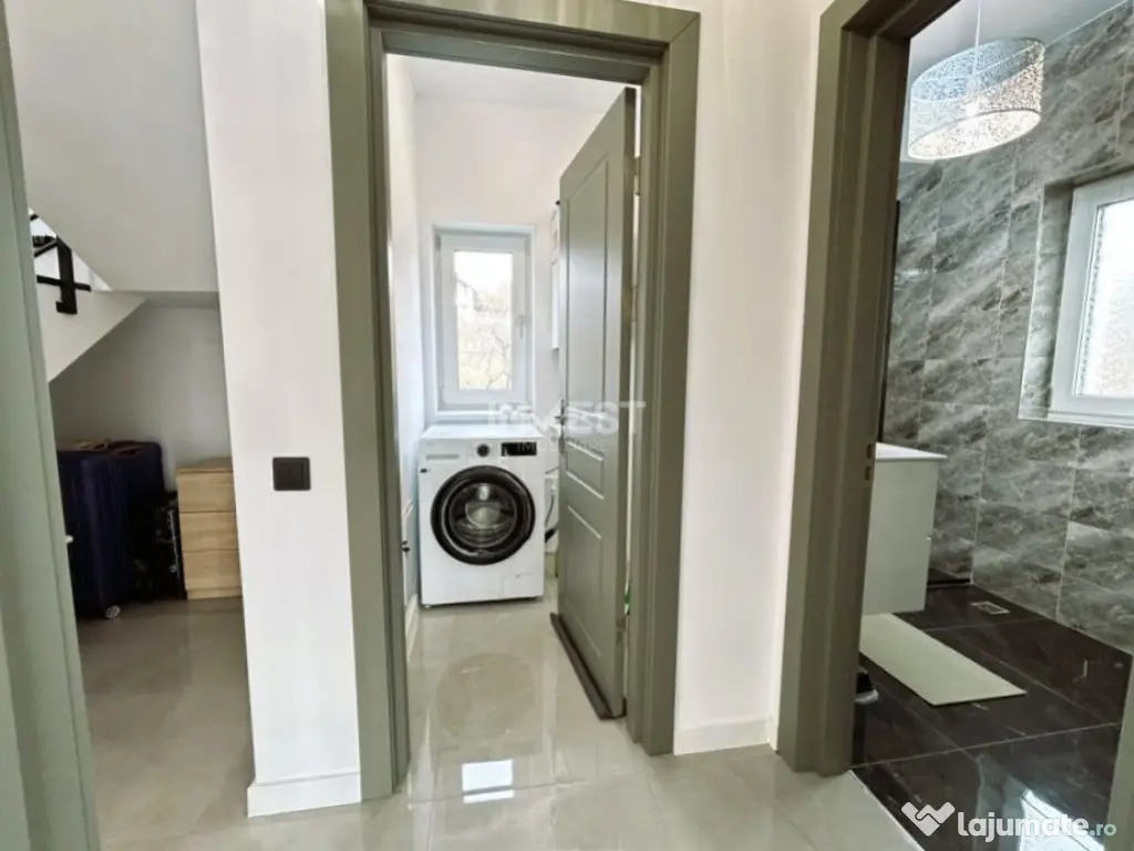Invest Imobiliare Iași vă propune spre achiziție o casă individuală cu 5 camere și 3 băi în cartierul Bucium din Iași. - Regim de înălțime parter + 1 Etaj + pod. - Se vinde mobilată și complet utilată. Proprietatea este situată în Municipiul Iași, zona Bucium, pe strada Ștefan Octavian Iosif la 1,1 km distanță de Plopii fără Soț. Pentru mai multe detalii, nu ezitați să ne contactați la numărul: ???? 0757 669 325 – Lorian Gherasim Locuința este construită în anul 2023 și locuită din luna iunie 2024. Are o suprafață construită de 139,7 mp și este compartimentată astfel: - Parter: hol de acces, dormitor/birou, grup sanitar, cameră tehnică, living cu bucătărie open-space și acces către terasa acoperită; - Etaj: hol, 3 dormitoare, 2 băi, balcon; - Pod: spațiu pentru depozitare. Terenul are o suprafață de 313 mp + cotă-parte din calea de acces. În curte regăsim terasa acoperită cu acces din bucătărie, 2 locuri de parcare amenajate, grădină îngrijită și mașină de tuns iarba. Casa se vinde exact ca în fotografii, complet mobilată și utilată, cu mobilier și electrocasnice aproape noi: mașină de spălat, plită electrică, televizor, toalete suspendate cu rezervoare încastrate, cabine de duș cu rigole de scurgere în pardoseală etc. Imobilul este construit din cărămidă (verificat de specialist la momentul achiziției), dispune de tâmplărie PVC cu 3 rânduri de sticlă, încălzire prin pardoseală cu distribuitoare separate pentru parter și etaj, precum și centrală termică în condensare pe gaz, marca Ariston. Proprietatea este branșată la toate utilitățile: - apă-canal (ApaVital); - electricitate și gaz (E.ON Duo). Accesul se face integral pe drum asfaltat, iar distanța față de șoseaua Bucium oferă un cadru liniștit și confortabil, precum și o vedere panoramică asupra orașului. Pentru mai multe detalii, nu ezitați să ne contactați la numărul: ???? 0757 669 325 – Lorian Gherasim Id intern: P8854 Număr niveluri imobil: 1 Număr Băi: 3 Comision cumpărător: 3% Nr. locuri parcare: 3 Curent Apă Canalizare Gaz