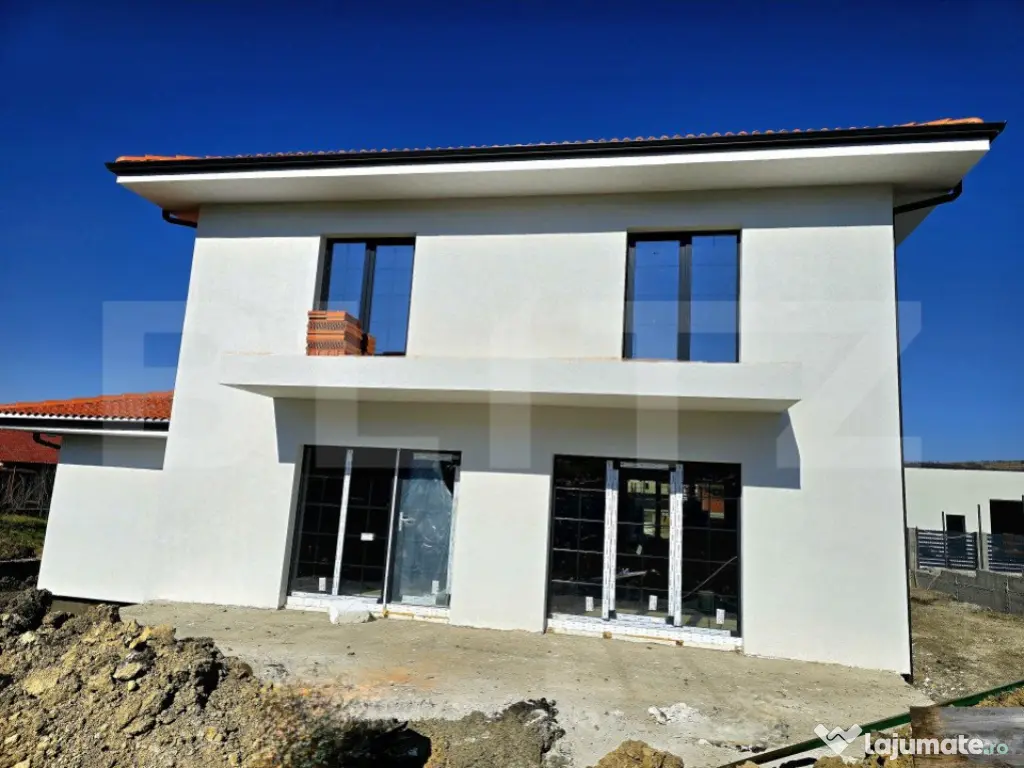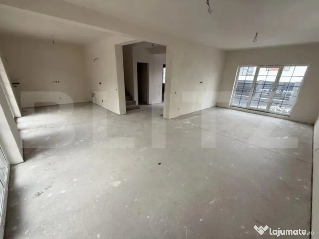 Blitz vă propune spre vânzare o casă individuală situată în Chinteni, care îmbină confortul cu funcționalitatea. Cu o suprafață utilă de 120 mp, construcția este ridicată pe un teren generos de 500 mp și este ideală pentru cei care își doresc un cămin spațios și luminos, într-o zonă liniștită. Compartimentare inteligentă Parter: Hol primitor și casa scării; O baie; Living generos, cu loc de luat masa și acces direct pe terasa din spatele casei; Bucătărie open-space, de asemenea cu ieșire pe terasă. Etaj: Două dormitoare spațioase, fiecare cu balcon; O baie modernă; Dormitor matrimonial cu baie proprie; Acces către podul izolat cu spumă, perfect pentru depozitare suplimentară. Detalii suplimentare Garaj auto integrat de 28 mp. Curtea se predă complet amenajată: terasată, împrejmuită cu gard pe fundație de beton, paviment realizat, pregătită pentru gazon; Orientare ideală, care asigură lumină naturală și confort termic; Termen de finalizare: Ianuarie 2025. Această casă reprezintă o alegere excelentă pentru o familie care își dorește un spațiu modern, funcțional și bine poziționat. Pentru mai multe detalii sau pentru a programa o vizionare, nu ezitați să ne contactați! Cod ofertă / ID BLITZ: P136718 Id intern: P136718 Număr niveluri imobil: 1 Număr Băi: 3 Nr. locuri parcare: 1 Curent Apă Canalizare Gaz