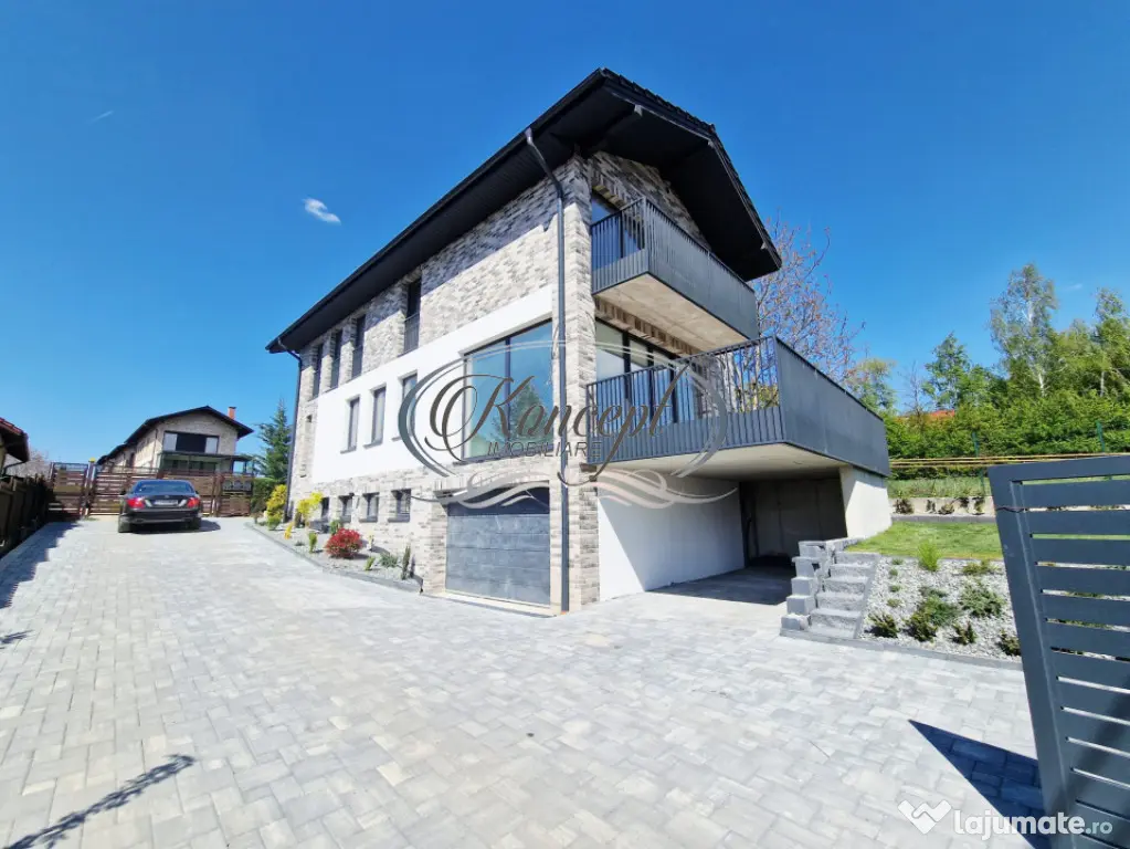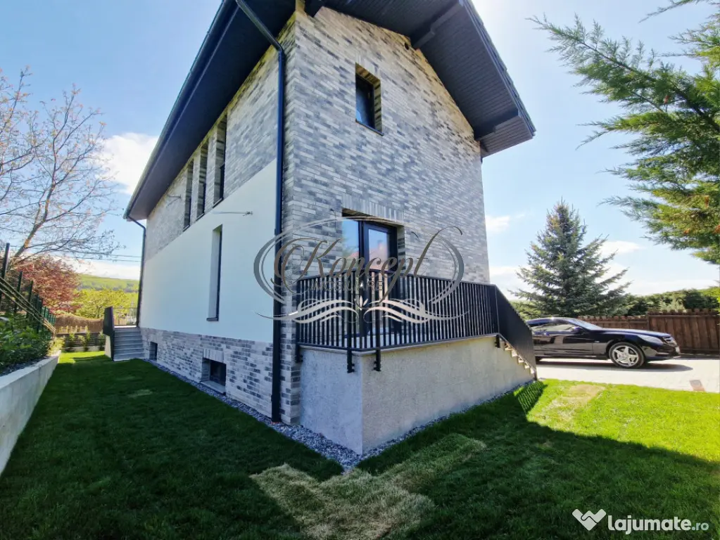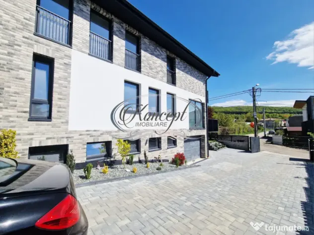 Koncept Imobiliare va ofera spre vanzare o casa individuala moderna, situata in Cluj-Napoca, cartierul Faget, zona Vila Tusa, intr-un cadru linistit, inconjurat de natura, cu expunere sudica si acces facil catre oras. Proprietatea este amplasata intr-o zona exclusivista, apreciata pentru aerul curat, intimitate si calitatea vietii. Imobilul este construit in anul 2025, are o suprafata utila de 180 mp si este dispus pe un teren de 283 mp, fiind organizat pe regim de inaltime D+P+E. Compartimentarea este inteligent gandita pentru a raspunde nevoilor unei familii moderne. La demisol regasim garaj interior, camera tehnica, un dormitor, camera de depozitare si baie. Parterul este dedicat zonei de zi si include un living generos, bucatarie inchisa cu loc de luat masa, baie, precum si o terasa mare amenajata cu gresie flotanta si spatiu de depozitare sub aceasta. Etajul este destinat zonei de noapte si cuprinde un dormitor matrimonial cu baie proprie, doua dormitoare suplimentare, baie si balcon. Din punct de vedere tehnic, proprietatea beneficiaza de incalzire in pardoseala, centrala termica proprie, izolatie exterioara cu polistiren de 15 cm si toate utilitatile necesare (apa, gaz, curent, canalizare). Casa se preda la stadiul de semifinisat, cu pereti finisati cu lavabila, oferind posibilitatea personalizarii interioare dupa preferinte. In plus, exista sistem de irigare pentru gazon si plante, garaj si loc de parcare exterior.