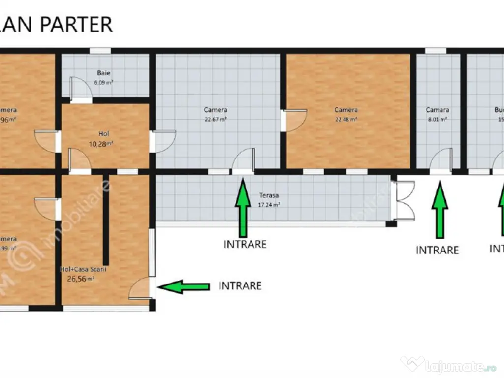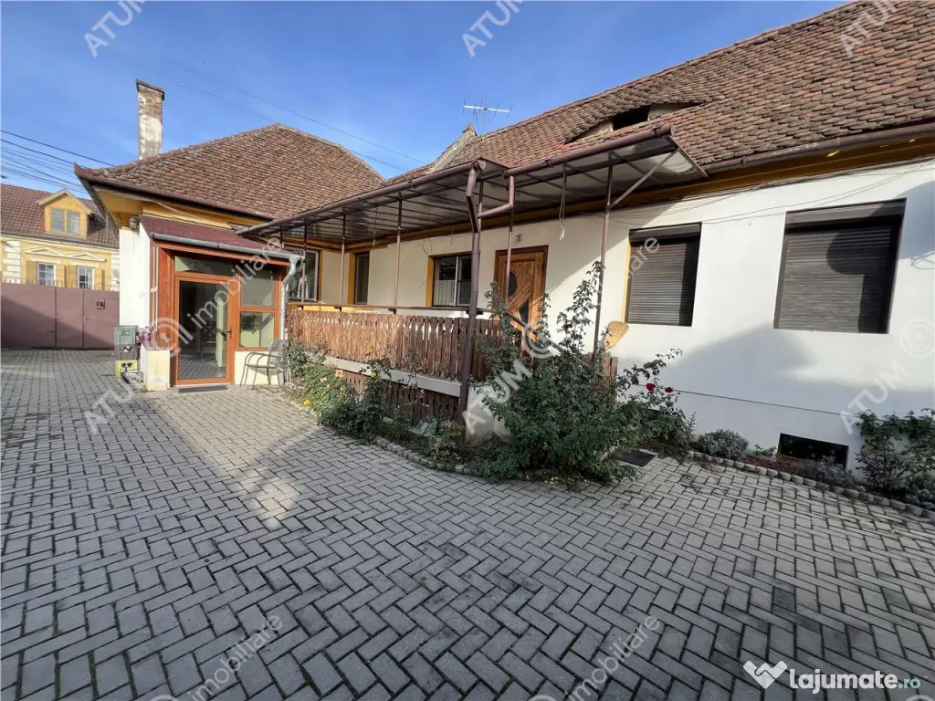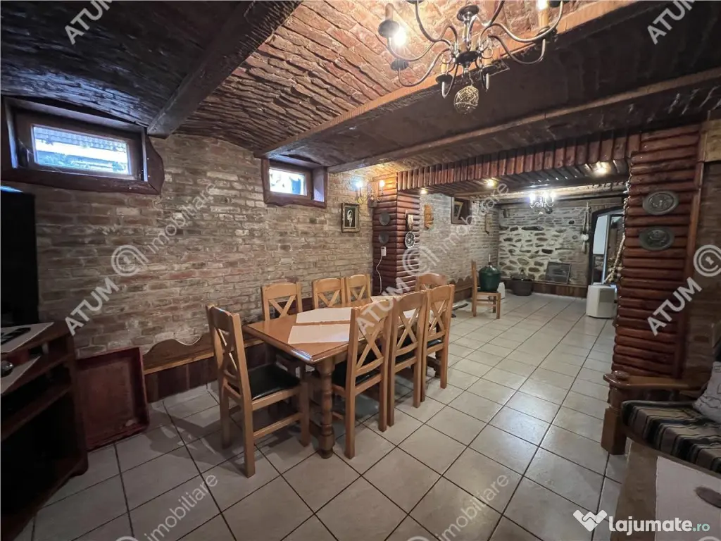 De vanzare casa individuala pe un singur nivel, compusa din 4 camere anexe si crama, construita pe un teren generos de 1300 mp, localizata in zona Turnisor din Sibiu. Casa are regimul de inaltime Demisol Parter Pod a fost edificata in anul 1962 pe structura portanta din zidarie din caramida, dispune de izolatie termica exterioara din polistiren expandat de 10 cm, acoperis tip sarpanta cu invelitoare din tigla, plansee din beton armat si lemn, subzidire si hidroizolatie. Amprenta la sol a casei este de 165.60 mp la care se mai adauga amprenta spatiilor de depozitare ( anexe ), o sura de aproximativ 100 mp si o filigorie de 33 mp construiti, totalizand 350 mp construiti si 950 mp de teren cu deschiderea la strada de 17 m. Terenul liber este amenajat cu pavaj din dale, zone betonate, zone verzi decorative amenajate cu flori si arbusti. Suprafata utila a casei masoara de 216 mp, care sunt distribuiti pe Parter si Demisol. Parterul masoara 140,87 mp, acesta fiind compus din 4 camere generoase cu suprafete de 22.96 mp, 22.63 mp, 22.43 mp, 20.00 mp, hol de acces casa scarii 12.56 mp, al doilea hol de 10.28 mp, baia 6.10 mp dotata cu geam de aerisire iar ca si corpuri separate cu intrari separate, o camara de 7 mp de unde se poate face accesul in pod si bucataria de 15.91 mp Demisolul are suprafata utila de 60,84 mp si amenajat ca si crama, fiind alcatuit dintr-o camera de 35.54 mp, o bucatarie de 9,25 mp, baia de 4,96 mp dotata cu cabina de dus si holul de acces 11,09 mp. Separat de suprafata utila a casei mentionam si pivnita de 17 mp, o terasa de 16,80 mp si o filigorie de 33 mp edificata pe structura din beton si zidarie din caramida unde dispune de gratar zidit, cuptor de paine, rotisor si afumatoare. Din punct de vedere al dotarilor si al finisajelor imobilul dispune de: centrala proprie pe gaz si calorifere incalzire in pardoseala iar ca si sursa auxiliara de caldura soba de la demisol faciliteaza procesul de incalzire, tamplarie PVC cu geam termopan 5 camere 3 foi de sticla, usi de acces din PVC, zugraveli in vopsea lavabila alba, pardoseli placate cu parchet laminat, dusumea si gresie, instalatie electrica si termica din cupru, pereti placati cu faianta, usi interioare din lemn. Imobilul are disponibilitate imediata si se preda complet mobilat si utilat. Din punct de vedere al pozitionarii acesta este situat in plan secundar fata de artera principala, strada Eduard Albert Bieltz, pe o strada linistita, lipsita de zgomot si praf datorat traficului. In imediata apropiere regasim magazine alimentare, statii de transport in comun, loc de joaca pentru copii institutii de invatamant. Valoare de achizitie este de 500.000 euro negociabil, acesta poate fi achizitionata si prin accesarea unui credit bancar. ID intern: 3154. Număr Băi: 2 Posibilitate parcare: Da Nr. locuri parcare: 5-10 Curent Apă Canalizare Gaz Demisol