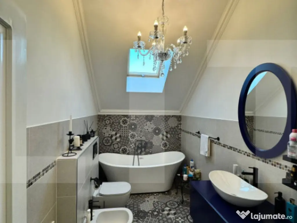 Vă propunem spre vânzare o casă individuală, cu 5 camere situată în localitatea Săcălaz. Aceasta a fost construită în anul 2019, cu regim de înălțime parter+ mansardă, având o suprafață utilă de 158mp și un teren de 535 mp, putem spune că este ideală pentru o familie care își dorește atât confort cât și liniște. Imobilul este realizat pe o structură din beton, cu zidărie din cărămidă Porotherm, fiind construită cu materiale de foarte bună calitate, iar finisajele premium își spun cuvântul. Proprietatea dispune de toate utilitățile necesare, cum ar fi: curent electric, apă, gaz, fosă septică , CATV, acces internet și fibră optică. Compartimentarea este una practică și bine optimizată, motiv pentru care la parter se regăsesc: un hol de acces, living, bucătărie, dormitor, cameră tehnică, debara, precum și două terase, ideale pentru momentele de relaxare. Mansarda cuprinde: un hol, trei dormitoare spațioase, o baie, dressing și logie, oferind confort pentru întreaga familie. Imobilul beneficiază de finisaje de calitate superioară, atent alese pentru a oferi cât mai multă durabilitate: - ușa de intrare este din lemn masiv - ușile interioare sunt din lemn - tâmplăria ferestrelor este din lemn PVC Salamander cu geam tripan, oferind o bună izolare atât termică, cât și fonică. - pardoselile sunt finisate o parte cu parchet, o parte cu gresie. Imobilul se vinde complet mobilat și utilat, fiind dotat cu: plită, cuptor, hotă, mașină de spălat rufe, mașină de spălat vase și frigider cu congelator. Confortul termic al locuinței este asigurat în mod principal de centrala proprie, cu sistem de încălzite prin pardoseală, aceasta oferă o distribuire uniformă a căldurii în întreaga locuință. Prețul este de 299.999€ Se acceptă ca modalitate de plată: surse proprii sau credit bancar. Cod ofertă / ID BLITZ: P166632 Id intern: P166632 Număr niveluri imobil: 1 Număr Băi: 2 Curent Apă Gaz