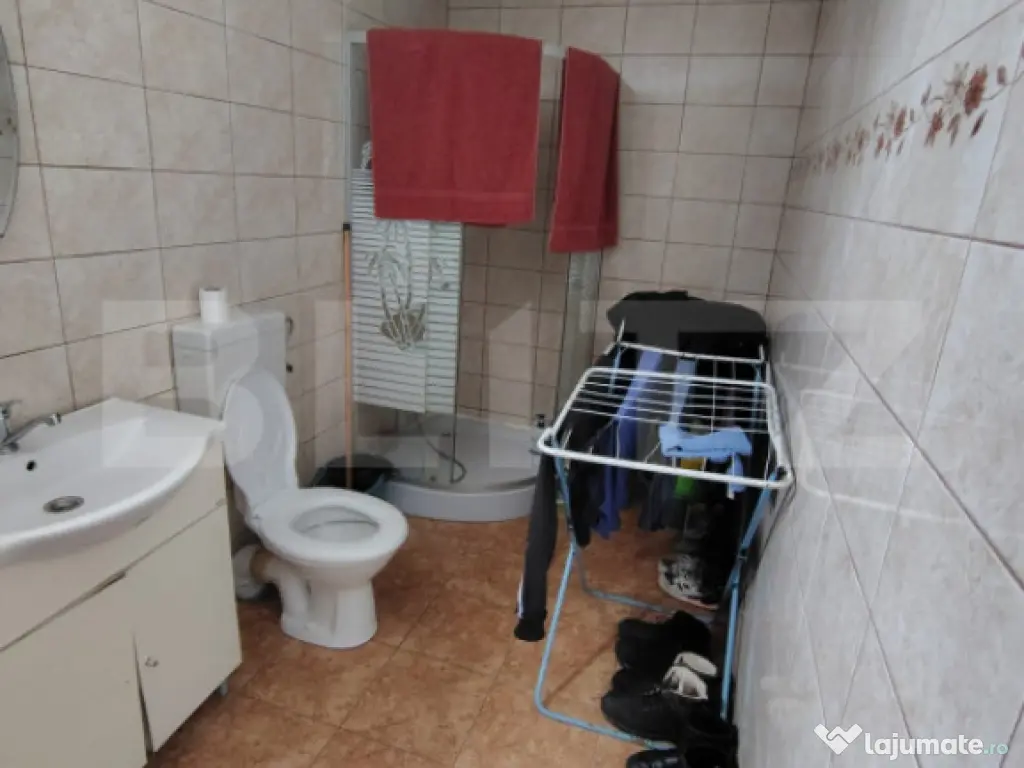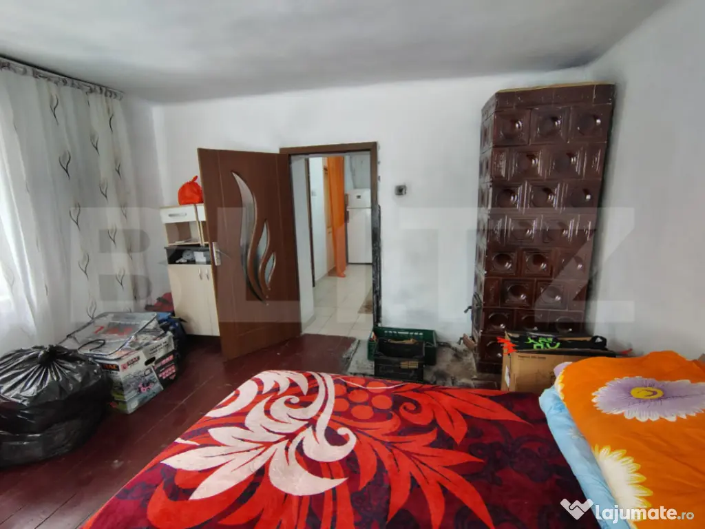 BLITZ oferă spre vânzare casă unifamilială, locuibilă imediat, situată în Jucu de Sus. Proprietatea dispune de o suprafață utilă de 82 mp, amplasată pe un teren de 693 mp. Compartimentare după cum urmează: hol acces (târnaț), 2 camere dintre care una recent construita, 1 bucătărie, baie. Construcția este realizată din piatră și BCA, cu fundație din piatră, izolație pe exterior. Utilități în casă, mai puțin gazul care este la poartă, sobă pe lemne. Exterior: acoperiș din țiglă, terasă, curte cu parcare, grădină, viță-de-vie în rod, pomi fructiferi, împrejmuire exterioară parțială. Proprietatea se află într-o zonă liniștită, pe o stradă secundară, aproape de drumul către Mănăstirea Nicula (care se afla la distanța 30 km), cu posibilitate de extindere pe o latură unde se află un teren neconstruit. Accesul din drumul european este facil, distanța până la intrarea în Cluj este de 17 km, care se parcurge în maxim 20 minute. Există posibilitatea de schimb cu ceva similar în Turda sau împrejurimi. Pentru mai multe detalii relevante vă așteptăm să programăm o vizionare! Cod ofertă / ID BLITZ: P162782 Id intern: P162782 Număr Băi: 1 Nr. locuri parcare: 1 Curent Apă Canalizare