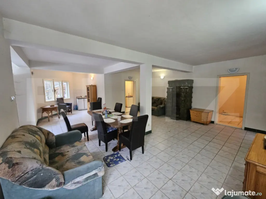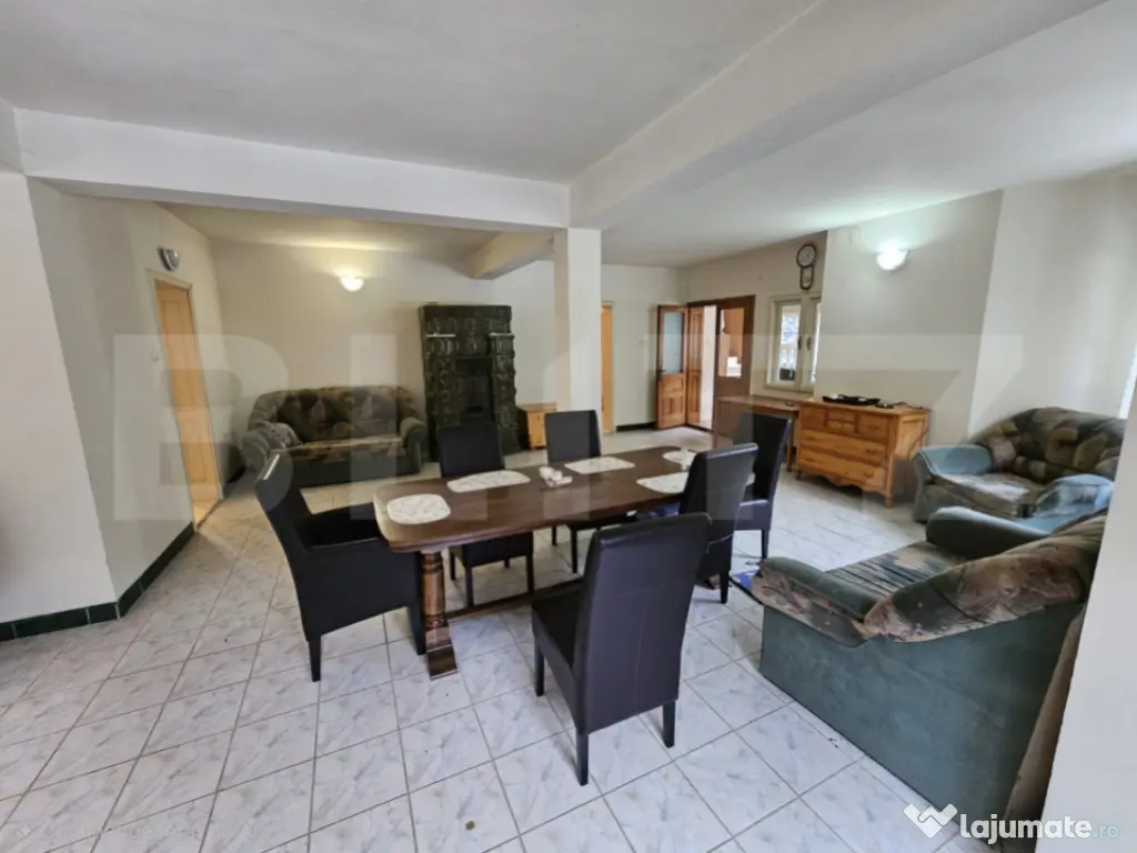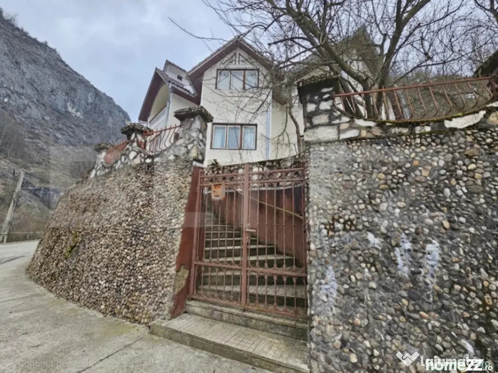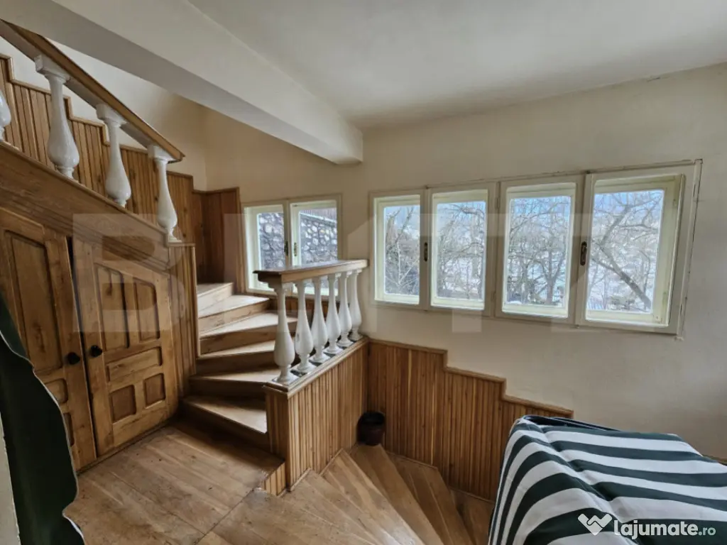 Situată în pitoreasca localitate Scărișoara, la drumul principal și cu acces facil în orice anotimp, această proprietate impresionează prin amplasarea sa privilegiată și prin panorama spectaculoasă asupra dealurilor și munților din jur, precum și asupra râului care curge liniștit chiar lângă casă. Cu o suprafață utilă de 286 mp, casa este construită din piatră, oferind durabilitate, autenticitate și un farmec aparte specific zonei montane. Proprietatea beneficiază de priveliști uimitoare, ce pot fi admirate prin numeroasele ferestre mari care inundă interiorul cu lumină naturală. Compartimentare practică și generoasă: 5 camere, dintre care 4 dormitoare la etaj Living spațios la intrare, ideal pentru momente petrecute în familie Al doilea spațiu de relaxare la etaj, în zona scării interioare Bucătărie la parter, cu cămară 2 băi (parter și etaj) Hol la etaj, larg și luminos Balcon la unul dintre dormitoare, cu vedere superbă către munte Casa dispune de scară interioară solidă, trei intrări separate și acces în curte din trei puncte diferite, oferind flexibilitate și funcționalitate sporită. La demisol se află un beci generos, care poate fi amenajat ca spațiu de relaxare, zonă de odihnă sau pentru diverse activități recreative. Exteriorul completează perfect atmosfera de refugiu montan: Terasă și zonă special amenajată pentru picnic Grădină cu pomi Teren de 2.699 mp de fâneață, cu acces direct din curte Garaj separat, construit ca anexă la drumul principal, cu 2 locuri de parcare Încă un loc de parcare în curte Utilități și dotări: Curent electric Apă Sobe din teracotă Proprietatea se vinde mobilată și utilată Această casă este ideală atât ca locuință permanentă, cât și ca reședință de vacanță sau investiție în turism, oferind liniște, aer curat și o conexiune autentică cu natura, într-un cadru montan deosebit. Cod ofertă / ID BLITZ: P164365 Id intern: P164365 Număr niveluri imobil: 1 Număr Băi: 2 Nr. locuri parcare: 3 Curent Apă Canalizare