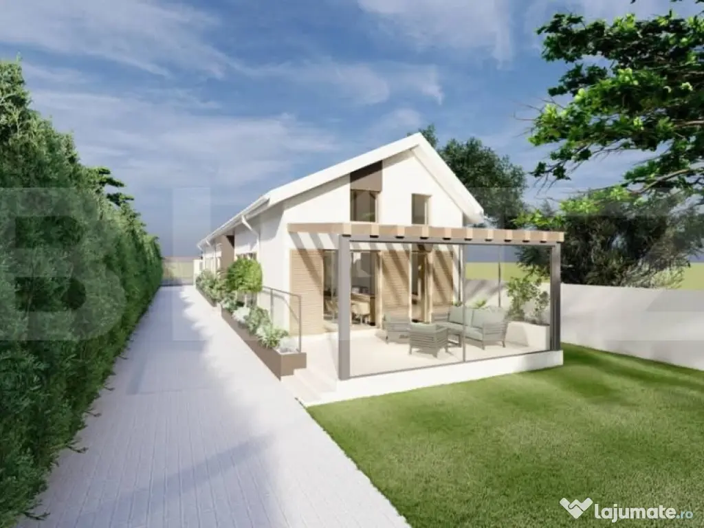 Acest ansamblu rezidențial exclusivist este format din două imobile elegante, proiectate pentru a oferi confort, siguranță și intimitate. O unitate este dispusa pe parter si una pe parter si etaj. Avantaje cheie: • Localizare perfectă – doar 15 minute cu mașina până în Timișoara, într-o zonă departe de agitația orașului, dar aproape de tot ce ai nevoie. • Materiale premium – finisaje de înaltă calitate, design modern și o atenție deosebită la detalii. • Toate utilitățile – drum asfaltat, curent electric, canalizare, gaz metan și internet prin fibră optică. • Spațiu și lumină – case spațioase, cu ferestre mari, terase generoase și grădini perfecte pentru relaxare. • Cadru natural deosebit – aer curat, liniște și intimitate, cu verdeață din belșug și un ambient relaxant. Pretul casei include un design interior profesionist, realizat exact in stilul pe care ti-l doresti. In acest moment casele se afla la stadiul "gri" in interior finisajele le poate alege cumparatorul in functie de preferinte, bugete generoase pentru finisaje, fadata este terminata inclusiv decorativa. Contactează-ne acum pentru mai multe detalii și hai să descoperi locul unde începe viitorul tău Cod ofertă / ID BLITZ: P143341 Id intern: P143341 Număr Băi: 2 Curent Apă Canalizare Gaz
