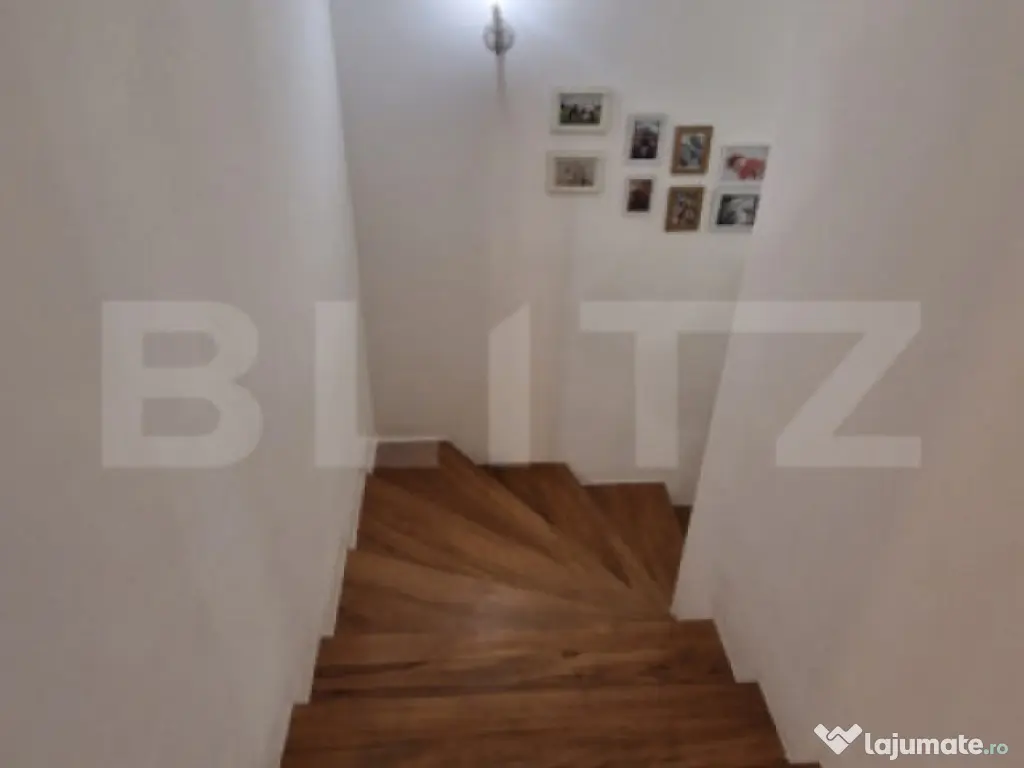 Blitz ofera spre vanzare o casa insiruita moderna, situata intr-un complex privat de case pozitionat in zona Terra, cu o suprafata utila de 82mp si gradina de aprox 40mp. Curtea amenajata cu gazon. Casa este compartimentata astfel: Parter: living open-space cu bucatarie, baie. Etaj: hol, 3 dormitoare dintre care unul cu baie proprie, baie comuna, balcon. Bucătăria este dotata cu mobilier mdf, plita/cuptor ,hota, masina de spălat vase, frigider, microunde. Scările interioare din lemn masiv, parchet grosime 12 mm. Accesul către Cluj-Napoca se poate face pe 1 din cele 3 variante: Centura de Nord, str Avram Iancu sau Centura de Sud. În imediata apropiere găsim cabinet medical, farmacie, carmangerie, brutărie, pizzerie, gradinita-cresa , având stația de autobus la 3 minute( transport spre la Cluj la fiecare 11 minute). In curte se pot parca lejer 2 masini, iar accesul se face de pe strada asfaltata. Casa face parte dintr-un ansamblu privat, dotat cu parcari subterane, curte cu pavele dedecat strict pietonal, zona de grill cu terasa acoperita si spatiu de joaca pentru copii. Cod ofertă / ID BLITZ: P166633 Id intern: P166633 Număr niveluri imobil: 1 Număr Băi: 3 Curent Apă Canalizare Gaz