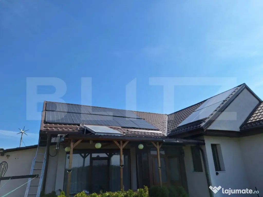 Blitz Imobiliare vă propune spre vânzare o casă modernă, construită pe un singur nivel, situată într-un cartier nou și liniștit din Hălchiu – ideală pentru o familie care își dorește confort, siguranță și costuri reduse de întreținere. Un cămin gândit pentru viața de familie: Suprafață construită: 151 mp, dispusă integral pe parter – potrivită pentru copii și persoane de toate vârstele Teren de 510 mp (17 x 30 m), cu spațiu generos pentru relaxare, joacă și activități în aer liber Compartimentare practică și funcțională: 3 dormitoare spațioase Zonă open space: bucătărie + living + hol, ideală pentru timpul petrecut împreună 1 baie Pod generos, cu posibilitate de mansardare – perfect pentru birou, cameră de joacă sau dormitor suplimentar Confort & siguranță: Sistem de supraveghere video și alarmă cu senzori de mișcare Curte amenajată cu foișor și zonă de grătar Magazie pentru depozitare Eficiență energetică & costuri reduse: Panouri fotovoltaice (4,5 kW + 2 kW) Turbină eoliană Termoșemineu pe peleți cu distribuție prin calorifere Sistem solar pentru apă caldă (boiler 160 L) + instant pe gaz → Soluții care asigură consum redus și un grad ridicat de autonomie energetică Utilități: Puț forat Fosă septică Proprietatea reprezintă o alegere excelentă pentru familiile care caută liniște, aer curat și un stil de viață echilibrat, într-o comunitate nou formată, la doar câteva minute de Brașov. Pentru mai multe detalii și programarea unei vizionări, vă rugăm să ne contactați. Cod ofertă / ID BLITZ: P140127 Id intern: P140127 Număr Băi: 1 Curent Sistem irigaţie