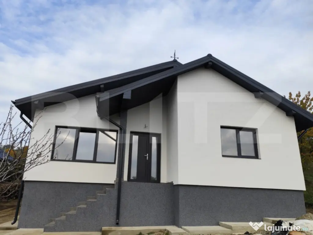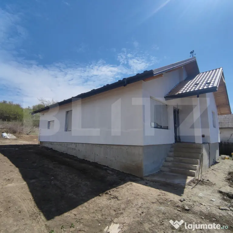 BLITZ vă propune spre vânzare o casă premium, plan parter, situată în Tomești, într-o zonă liniștită și accesibilă, ideală pentru cei care își doresc confort, intimitate și o locuință construită la standarde înalte de calitate.