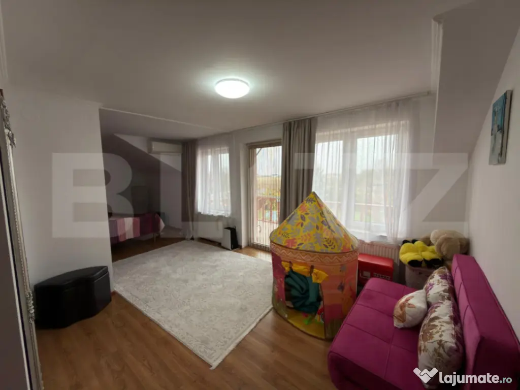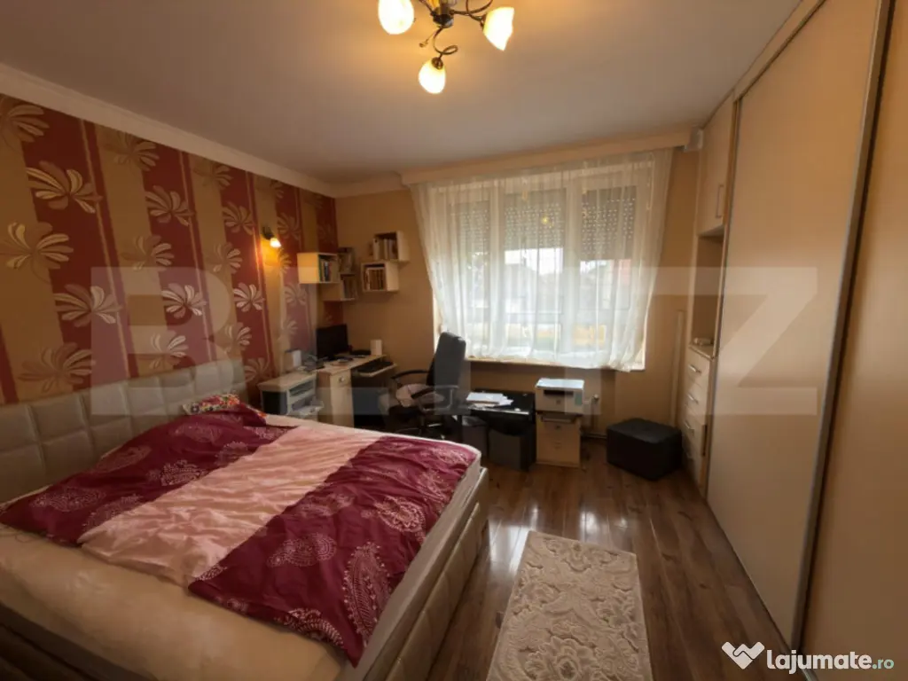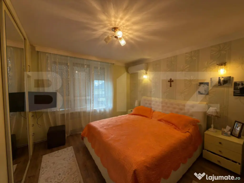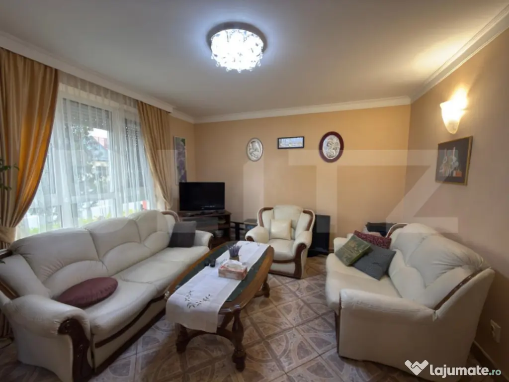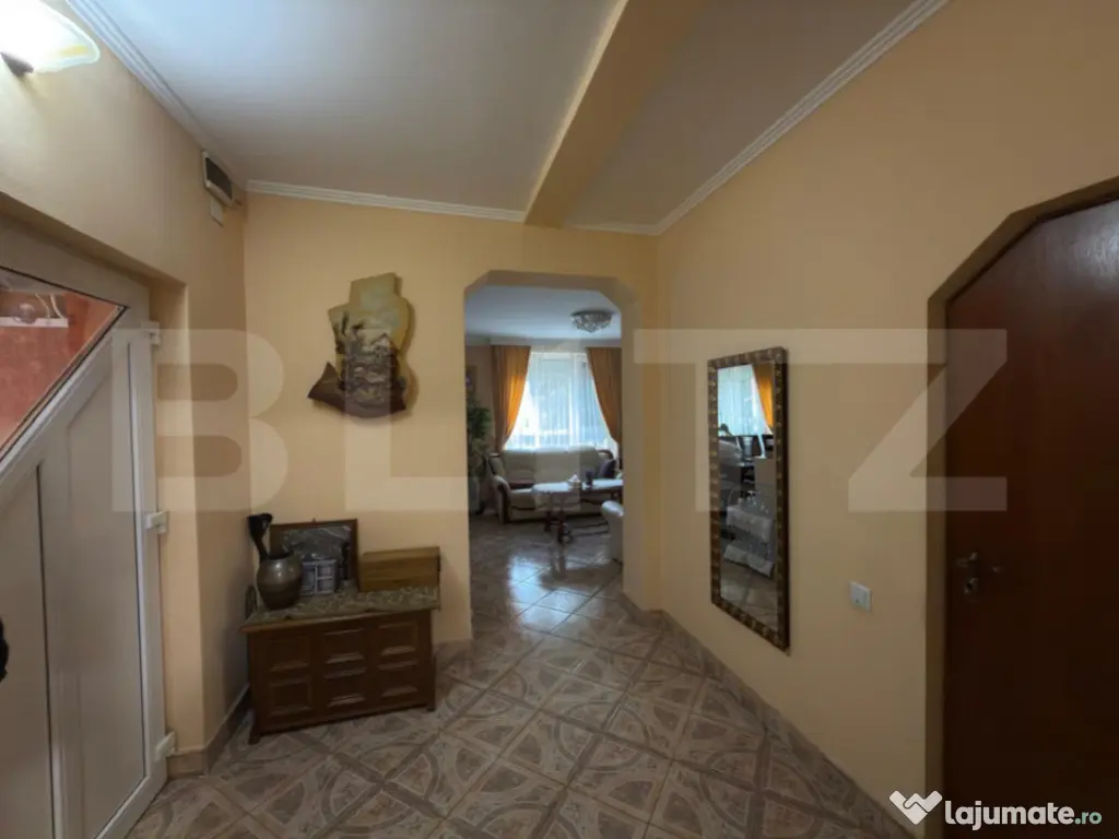 Blitz vă prezintă o proprietate deosebită, localizată semicentral, ideală pentru cei care își doresc liniște, spațiu și intimitate, dar în același timp acces rapid către toate punctele de interes ale orașului. Casa este de tip P+E, cu o suprafață utilă de 180 mp, amplasată pe un teren generos de 1300 mp. Proprietatea îmbină cu eleganță confortul modern cu funcționalitatea unei locuințe primitoare și bine organizate. ???? Compartimentare: Parter: Bucătărie modernă cu zonă de dining și living spațios Baie de serviciu Etaj: 2 dormitoare luminoase 1 baie comună Dormitor matrimonial cu dressing, baie privată și balcon ???? Detalii exterioare și dotări: Acces auto în curte, o parte pavata pentru parcare, iar restul amenajată cu spațiu verde și copaci maturi ce creează o atmosferă relaxantă Terasa acoperită de 40 mp, perfectă pentru momente de relaxare în aer liber Piscină privată (8x4 m, adâncime 1,2 m) cu sistem de filtrare și încălzire Sistem de irigație automat pentru gazon Beci subteran pentru depozitare Sistem de panouri solare de 3 KW Aparate de aer condiționat în fiecare zonă a casei Geamuri cu jaluzele, izolație termică completă Renovare integrală realizată în 2003 În partea din spate, curtea se continuă cu o mică grădină de legume, locul perfect pentru a cultiva produse proaspete chiar acasă. ???? Localizare: zonă semicentrală, liniștită, cu acces facil către centre comerciale, școli și transport public. ???? O proprietate completă, ideală pentru o familie care își dorește un cămin elegant, spațios și perfect echilibrat între natură și confortul urban. Cod ofertă / ID BLITZ: P157986 Id intern: P157986 Număr niveluri imobil: 1 Număr Băi: 3 Nr. locuri parcare: 4 Curent Apă Canalizare Gaz Climă