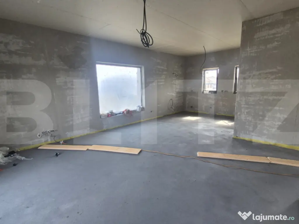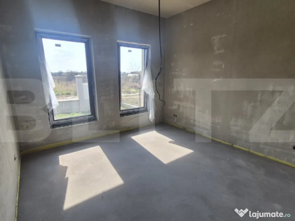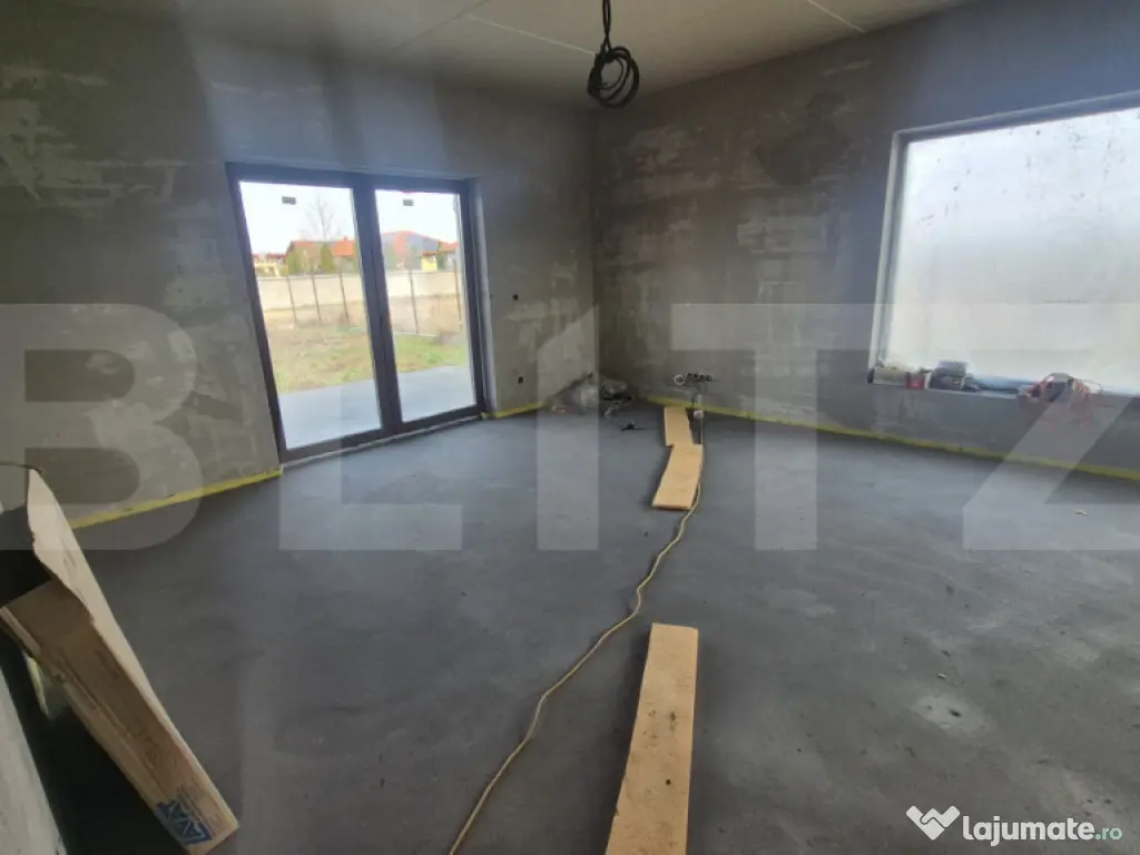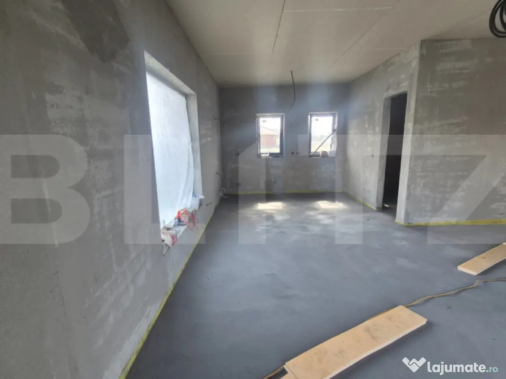 Blitz vă prezintă o locuință individuală cu arhitectură modernă și compartimentare eficientă, situată într-o zonă liniștită și în plină dezvoltare. ????Casa, construită în anul 2025, oferă un excelent raport între confort, funcționalitate și potențial de personalizare, fiind predată semifinisată, astfel încât viitorul proprietar își poate amenaja interioarele după propriul stil. ✅Caracteristici principale: ????Tip: Casă individuală, regim de înălțime: parter ????Suprafață utilă: 97 mp ????Suprafață construită: 134 mp ????Teren: 570 mp – perfect pentru grădină, zonă de relaxare sau spații de joacă ????Front stradal: 17.75 metri ????Structură: Cărămidă Compartimentare: 4 camere luminoase 3 dormitoare confortabile 2 băi 1 pod Living spațios cu acces către curte Bucătărie bine poziționată Holuri generoase ✅Proprietatea oferă toate avantajele unei construcții noi: eficiență energetică ridicată, materiale moderne și posibilitatea de a o finisa exact pe gustul dumneavoastră. ????Ideală pentru familii ,această casă pune la dispoziție atât spații interioare bine gândite, cât și un teren suficient de mare pentru proiecte viitoare: terasă, foișor, loc de joacă sau grădină. ????Pentru mai multe detalii sau programarea unei vizionări, vă stam cu drag la dispoziție! Cod ofertă / ID BLITZ: P159865 Id intern: P159865 Număr Băi: 2 Curent Apă Canalizare Gaz